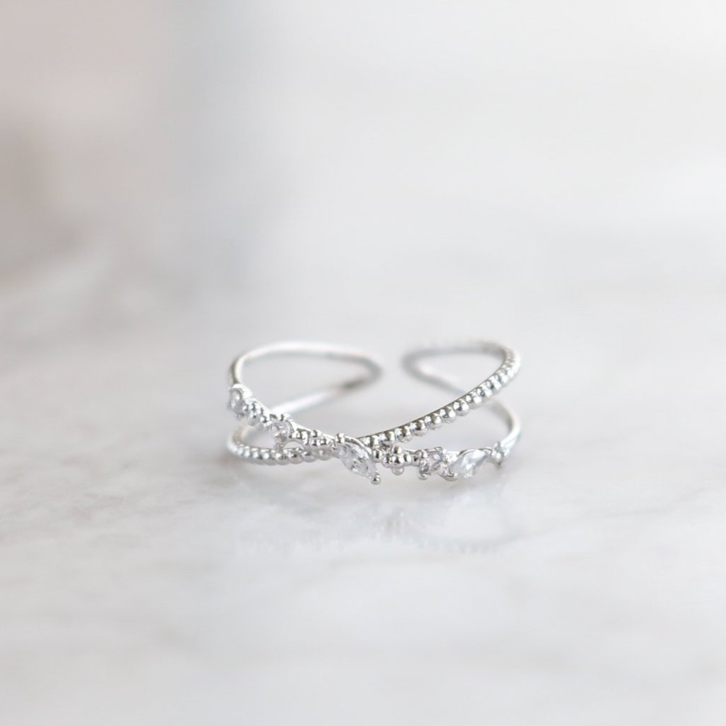 The Lucia ring features a vintage-inspired, detailed line with marquise and round cut crystals. It is intertwined with a charming, beaded band. Slightly adjustable, this ring is comfortable, yet gorgeous.