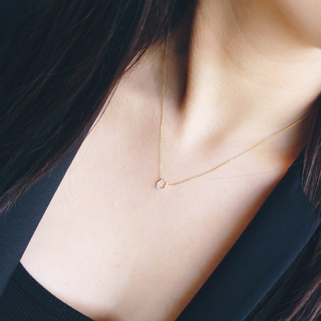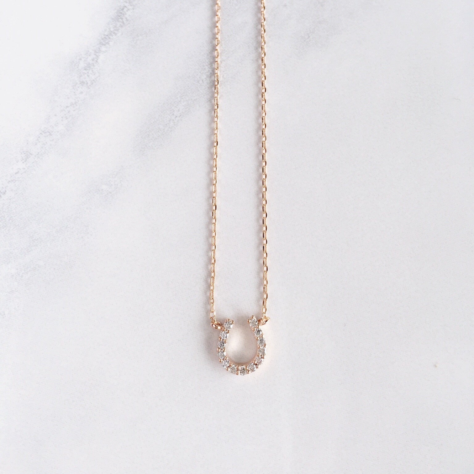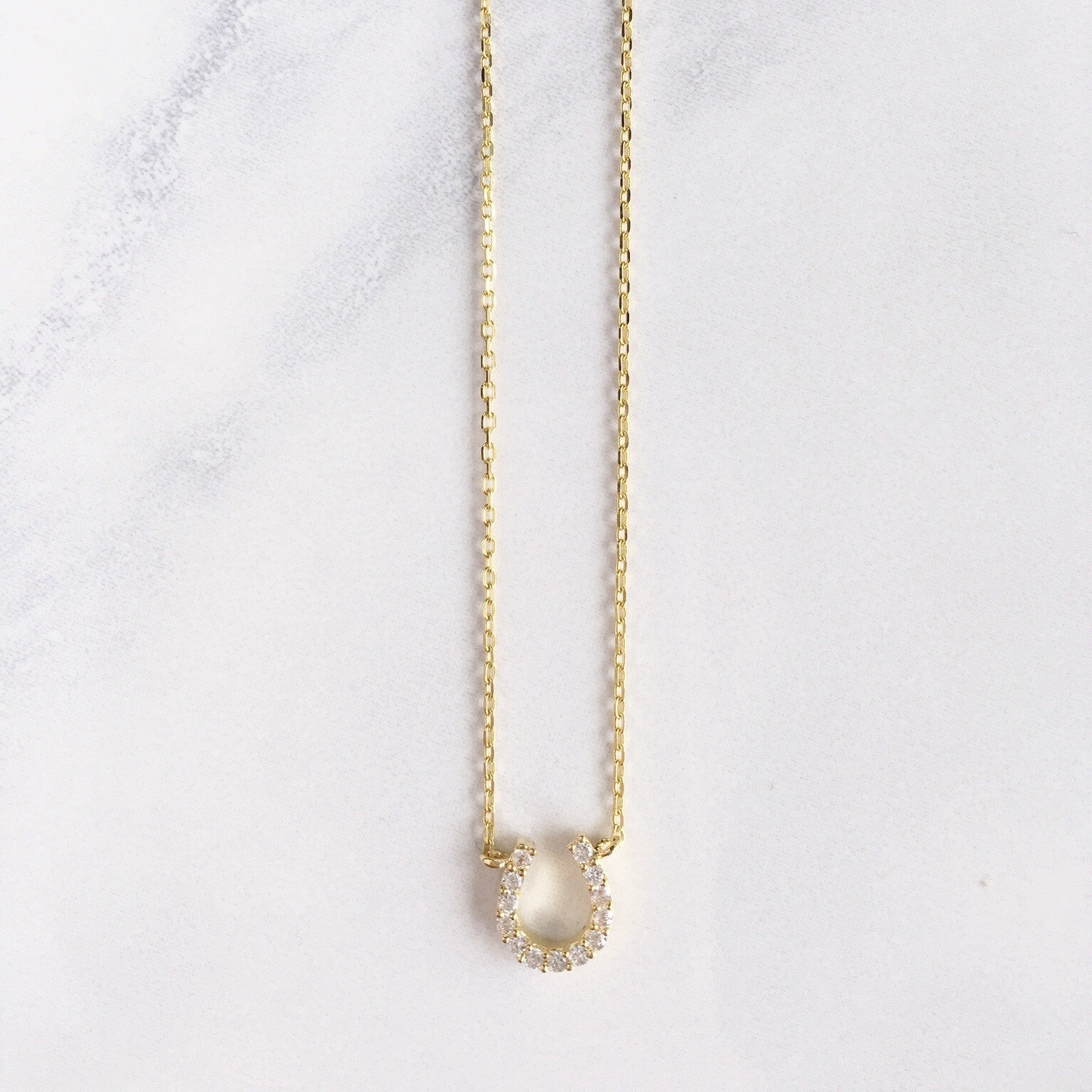 Crystal Encrusted Horseshoe Necklace. Representing good luck and good fortune, the Horseshoe pendant reminds you to be confident everyday you put it on. Made with high quality materials, this necklace is perfect for layering with other necklaces. All our necklaces also come with a small crystal pendant in the back so you sparkle from all sides!