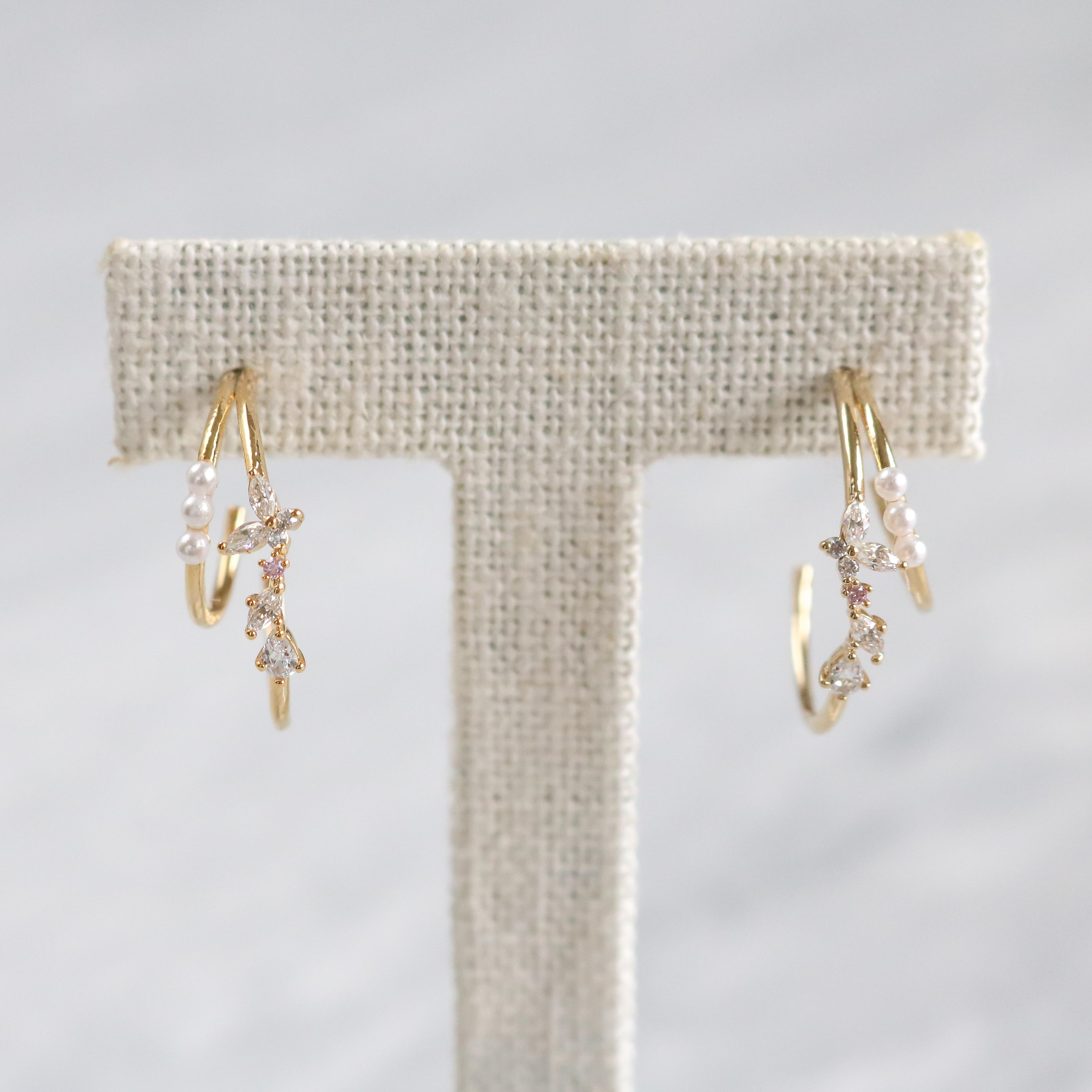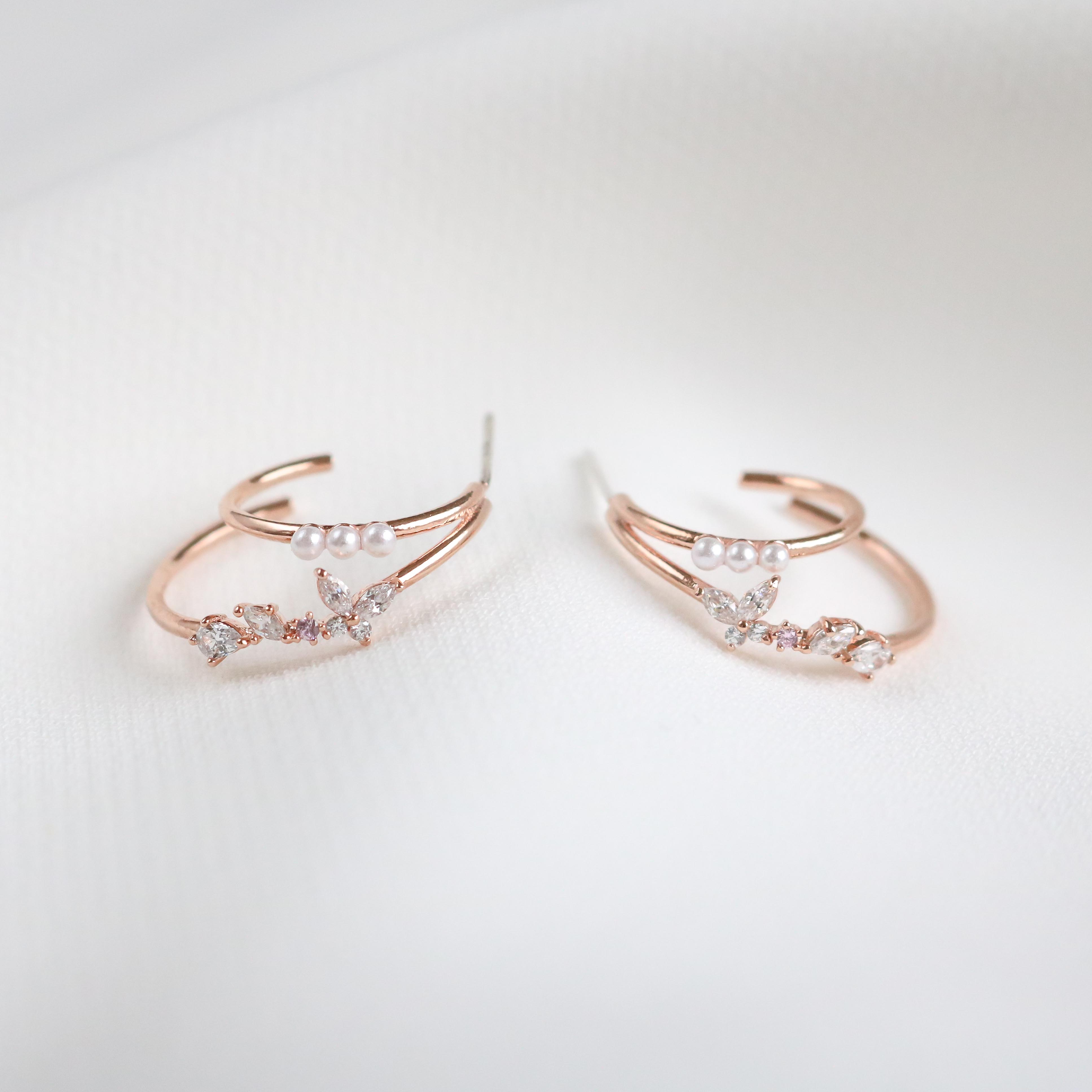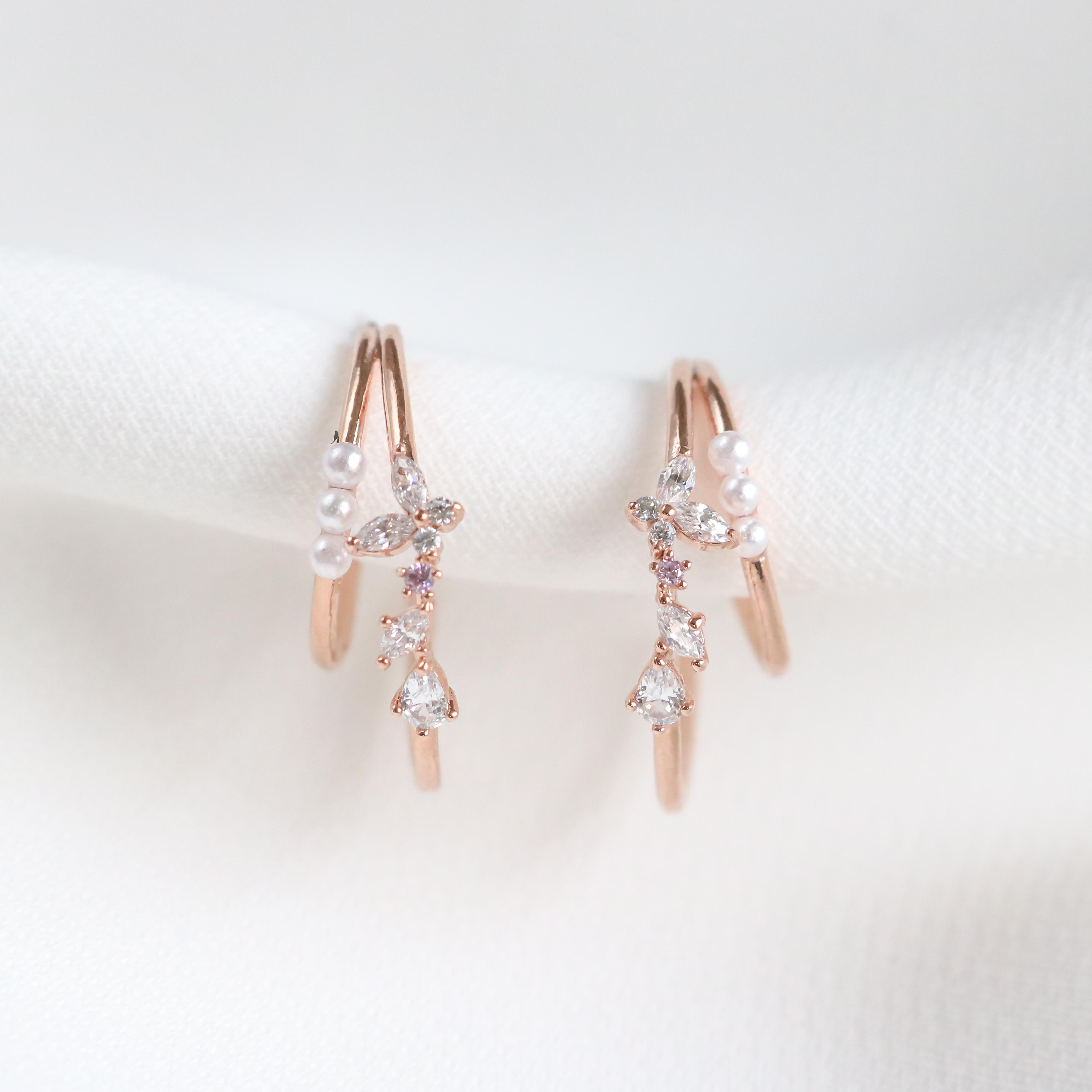 Get ready to turn some heads! The Delphi Hoop Earrings feature a charming marquise and round cut crystal butterfly design, followed by a petite pink, marquise, and pear-shaped crystal. This design is finished with a smaller outer hoop that is fastened with 3 small faux pearls.