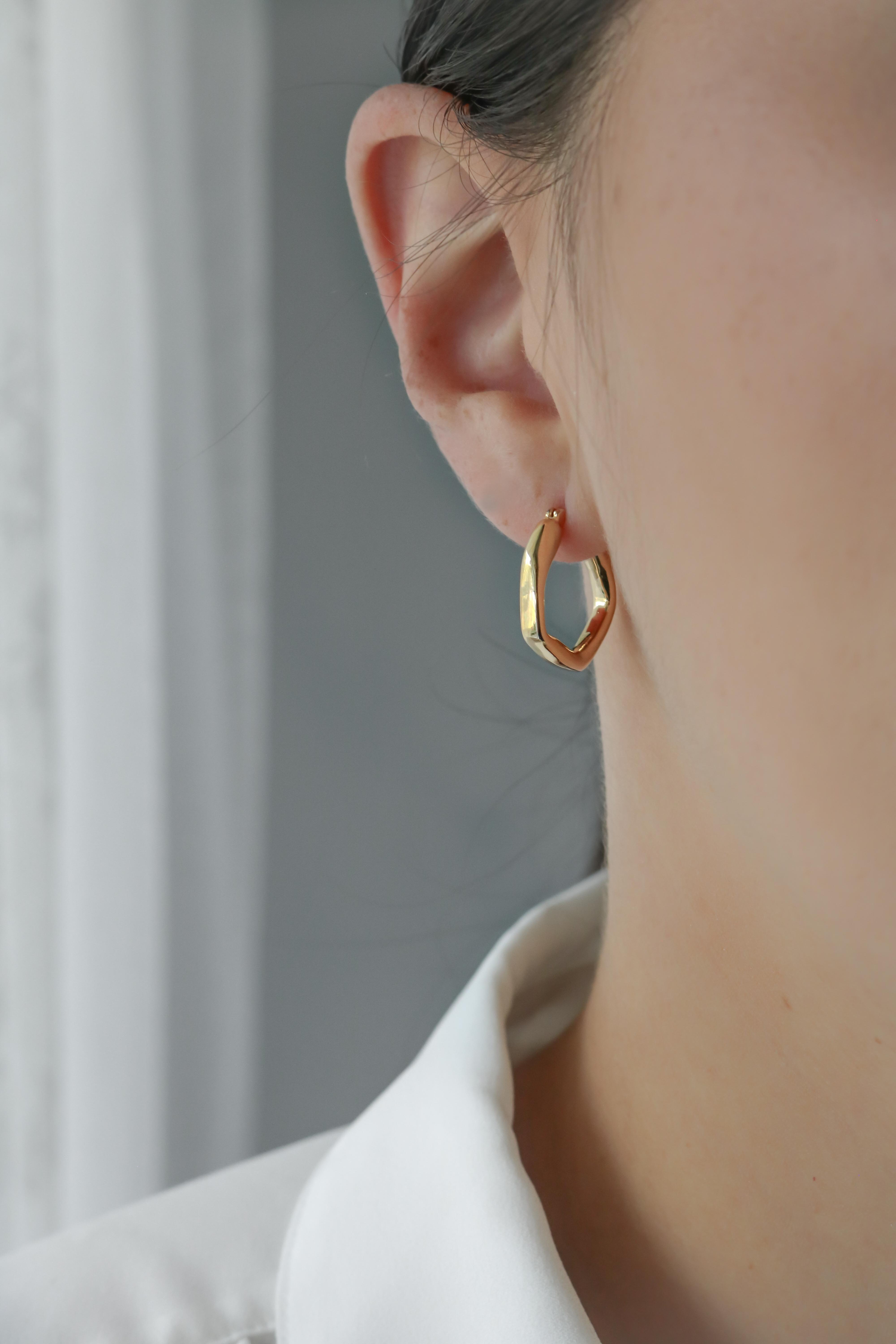 Marlow Hoop Earrings combines an organic shape in a hexagonal hoop that makes them so unique and pretty. We love them (and so will you).