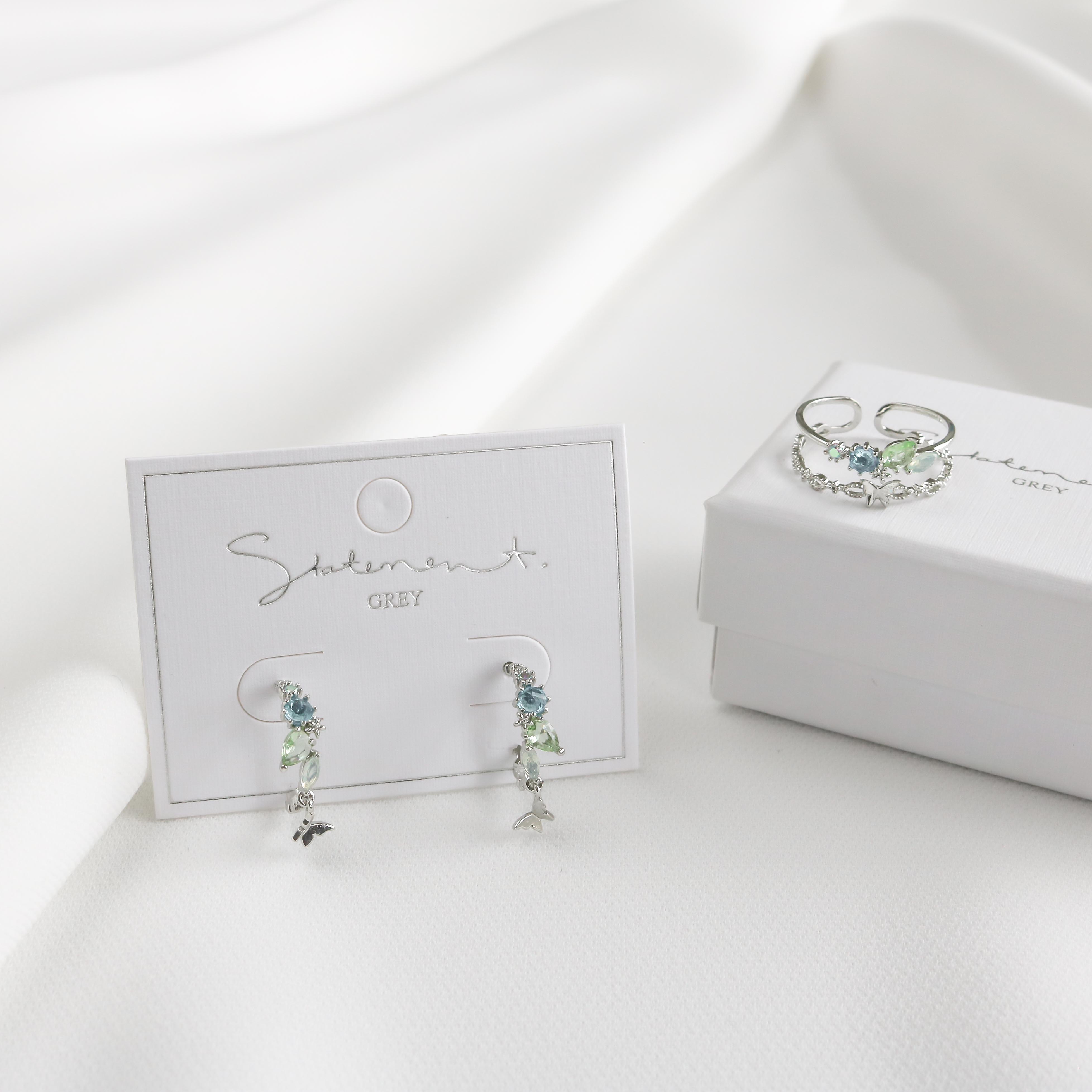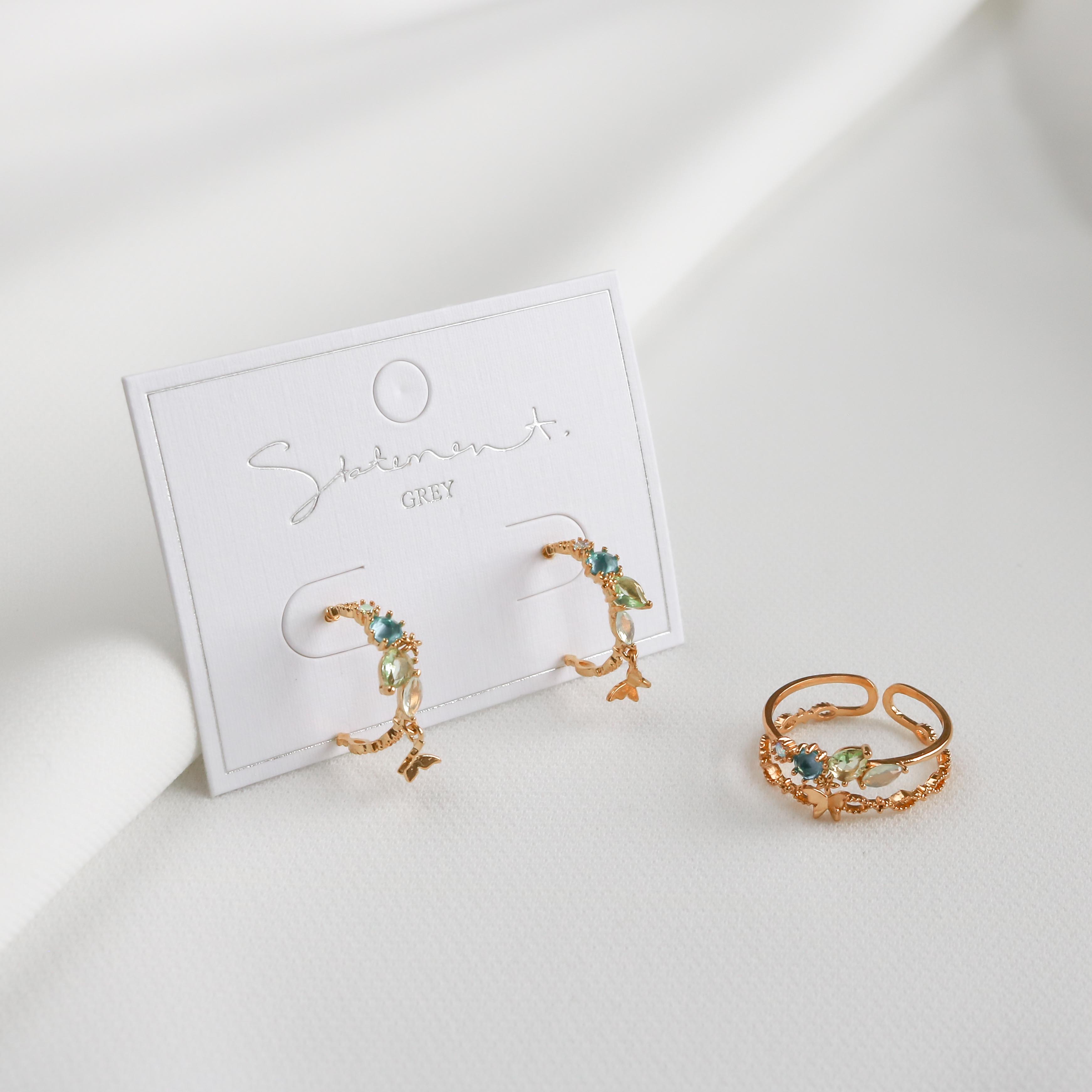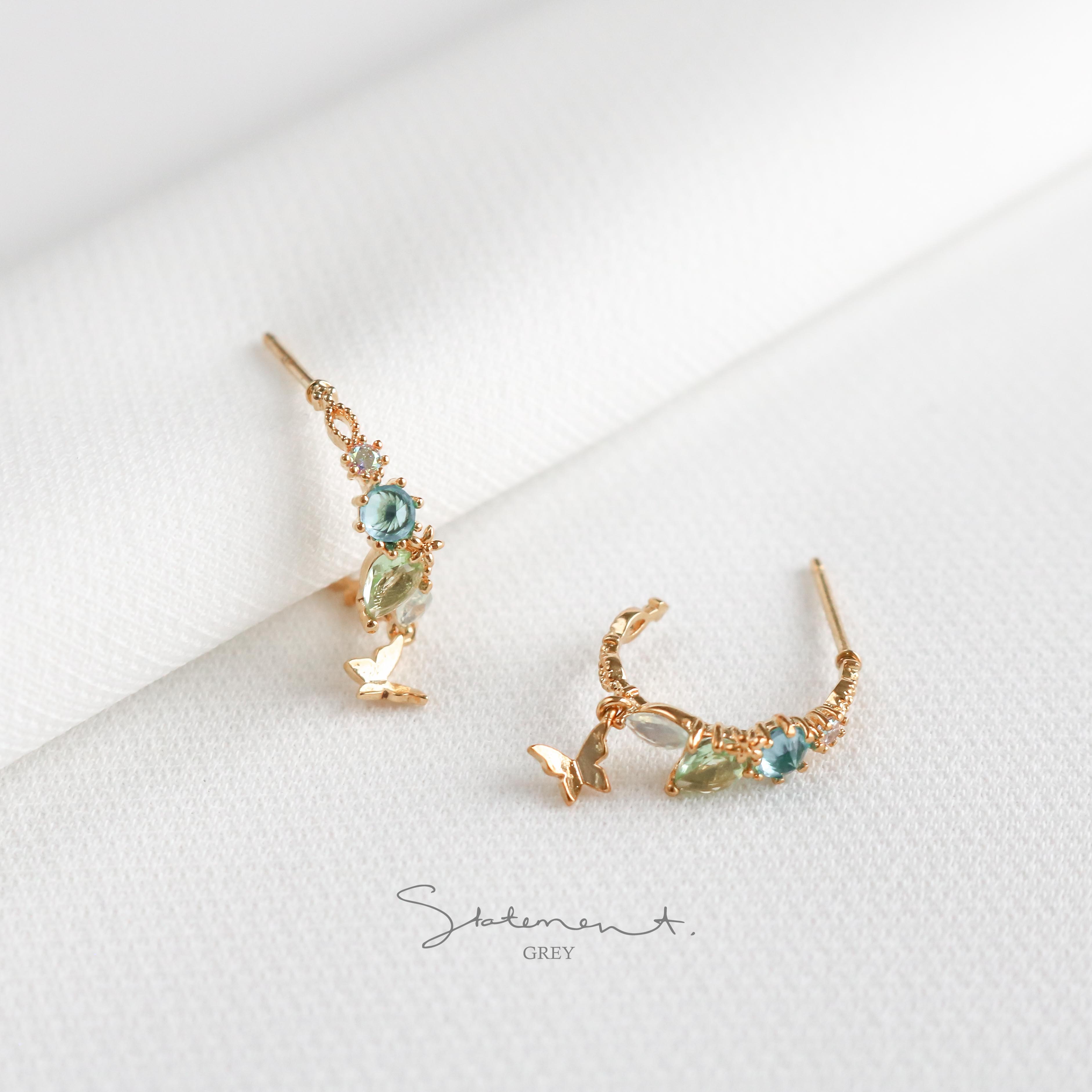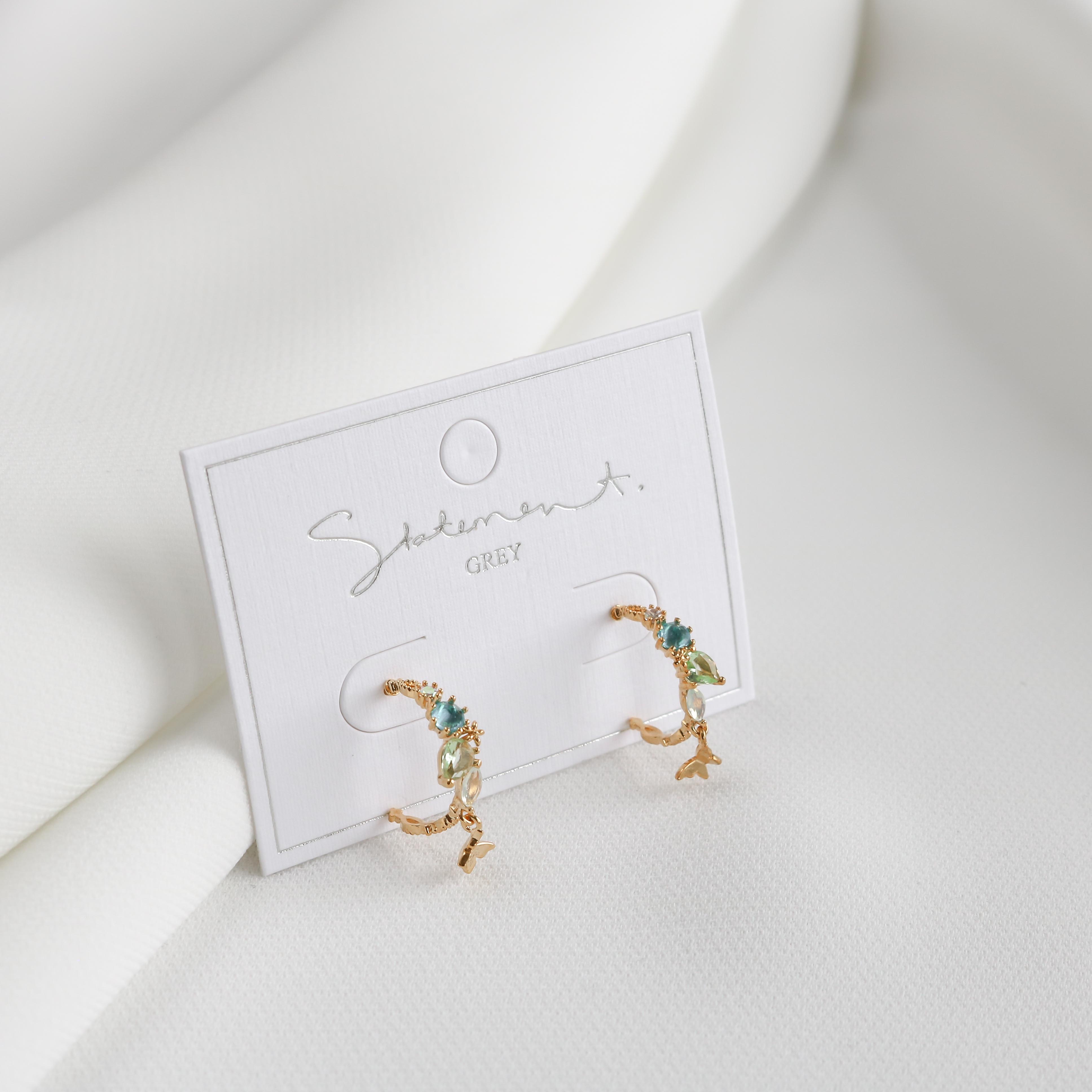 Flutter into style with our Blue Green Stone Butterfly Hoop Earrings! These hoops feature a stunning mix of blue, green, and iridescent stones and are topped off with a charming butterfly. Complete the look by pairing them with our matching ring for a perfect set.