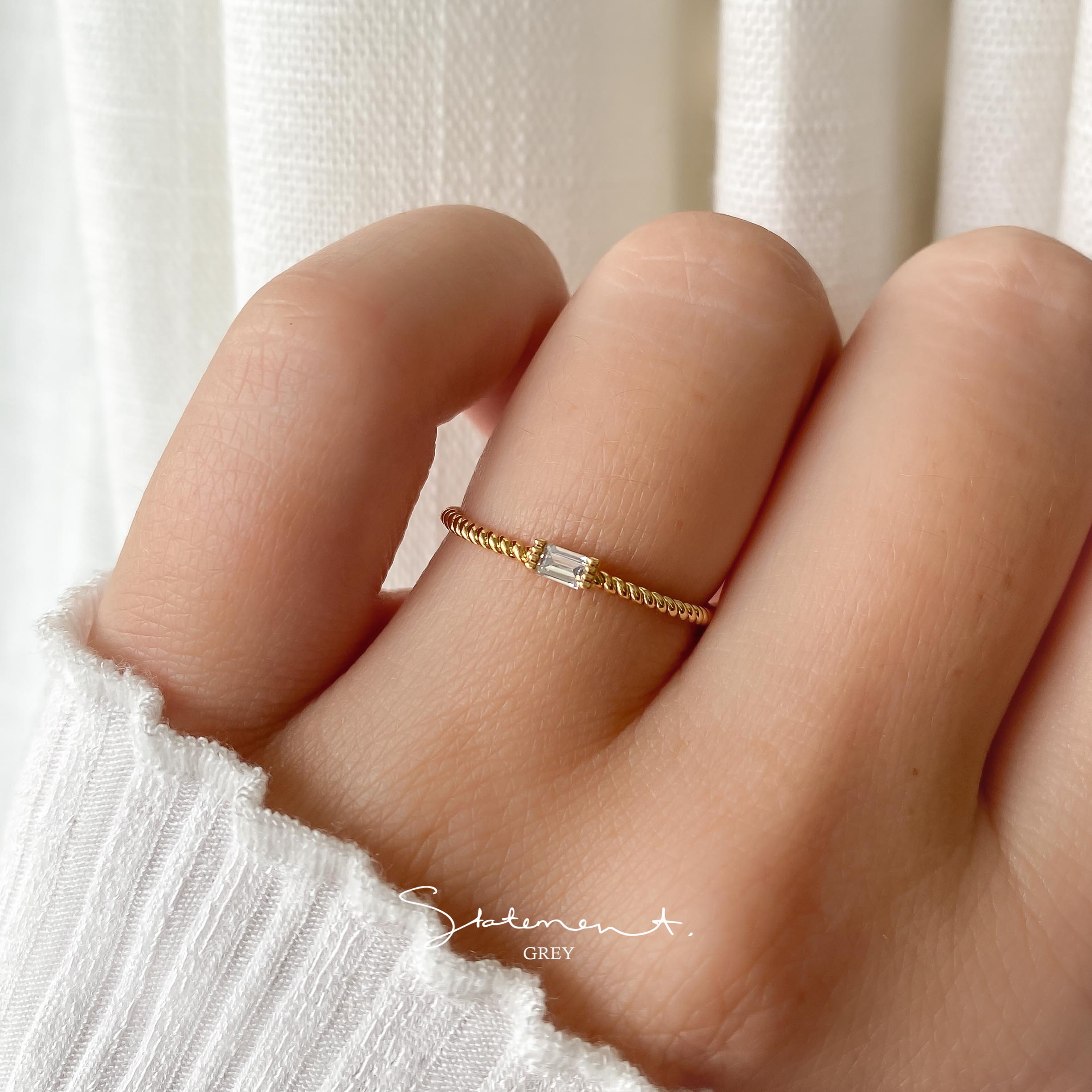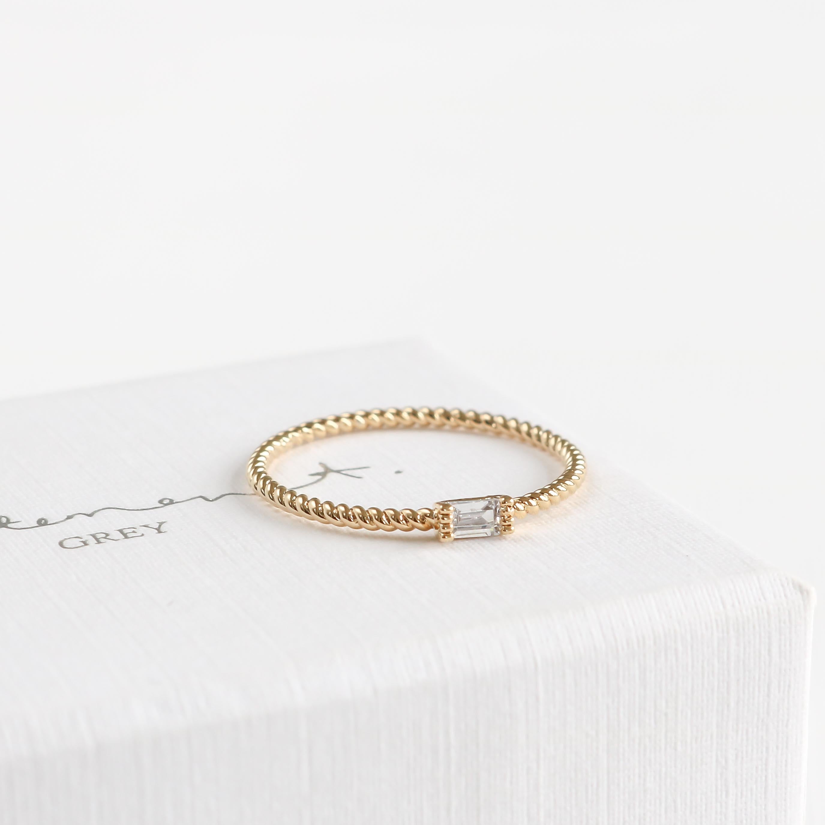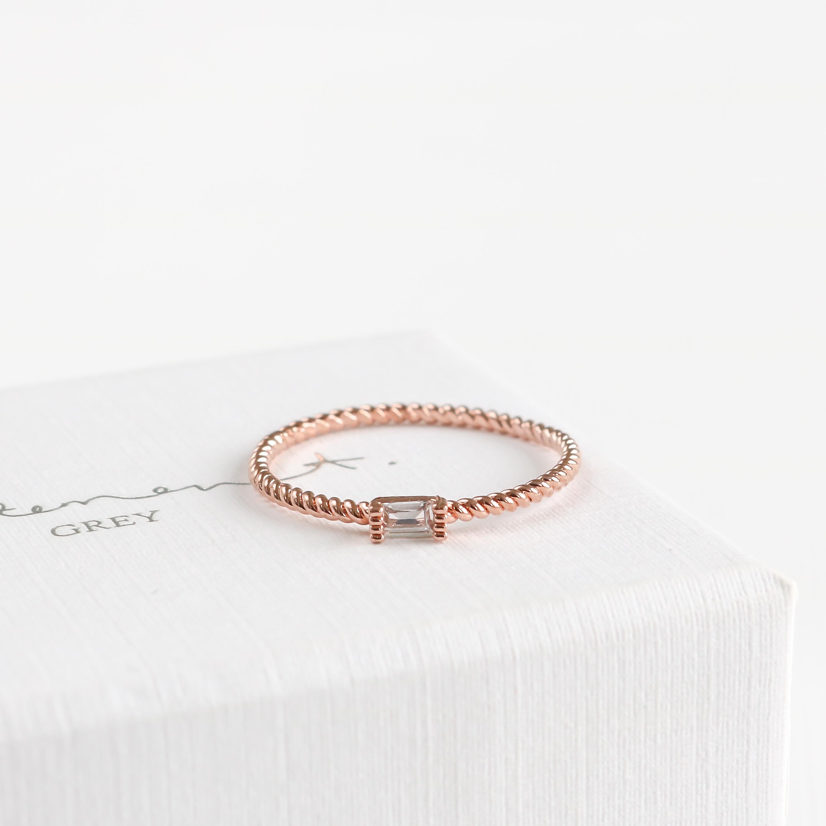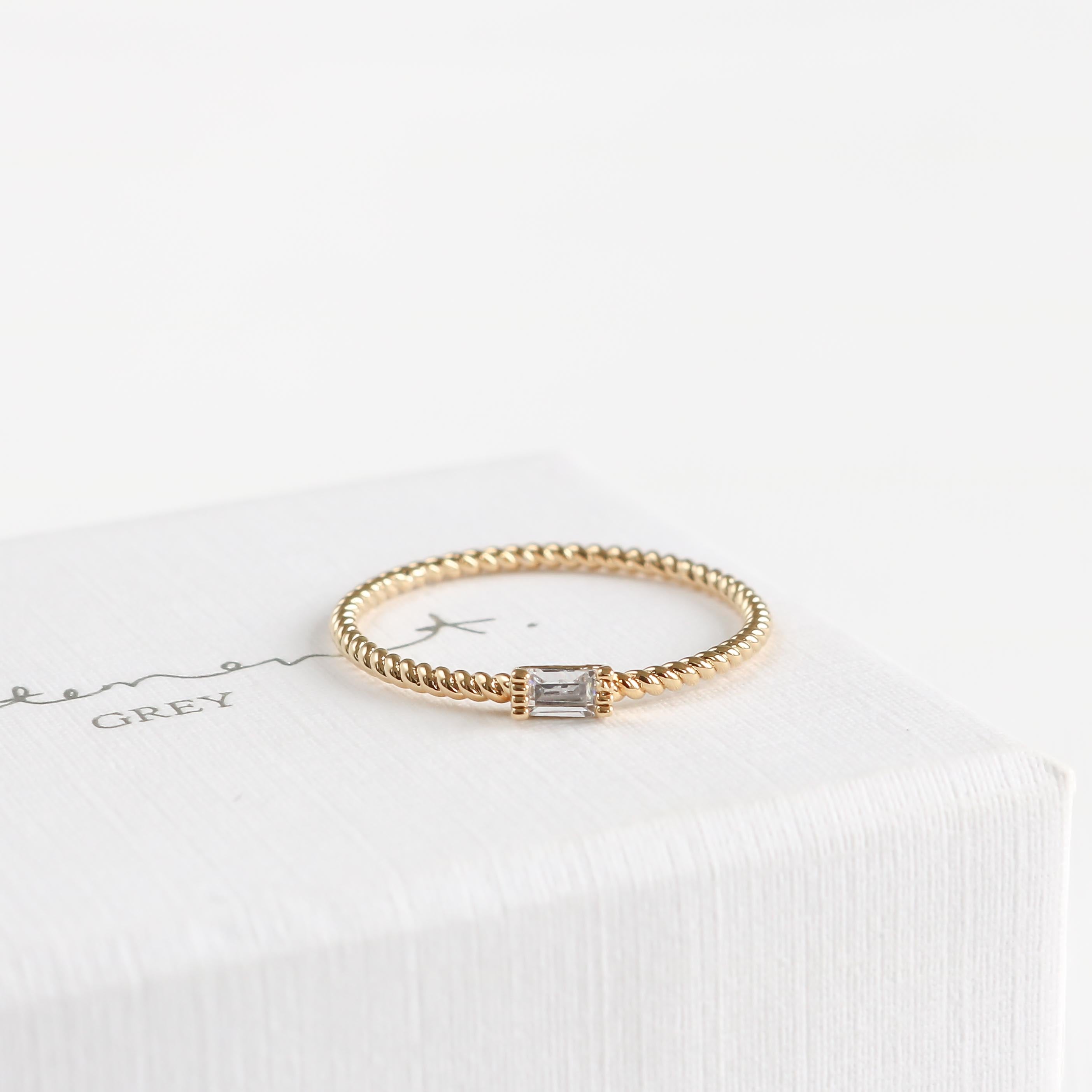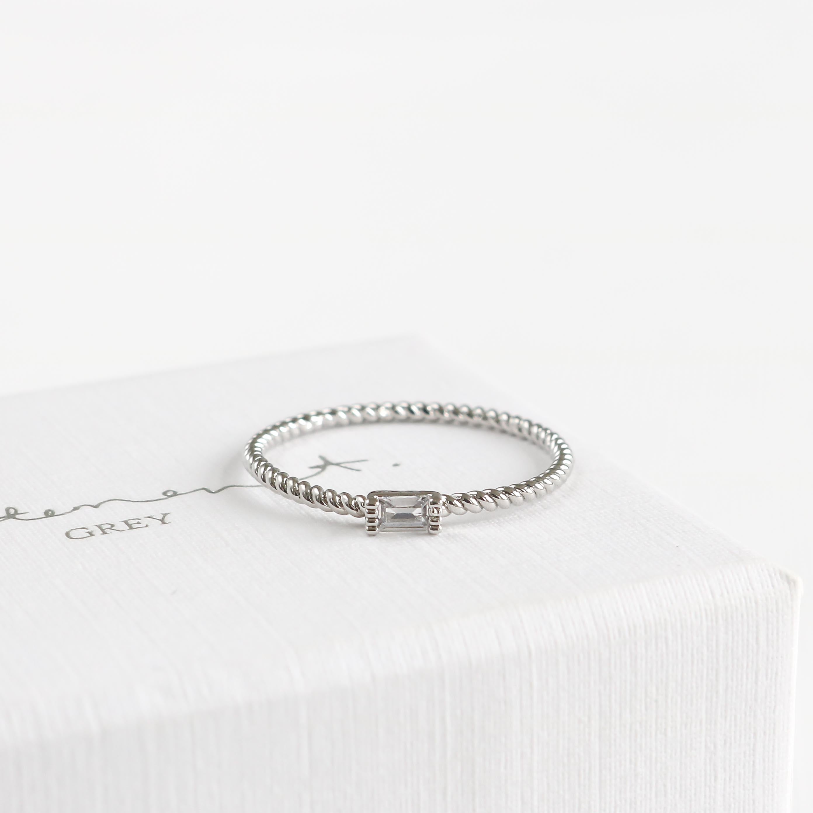 A gorgeous addition to your mix-and-match ring stacking collection! The Lis ring features a charming, emerald cut crystal on a twisted band.