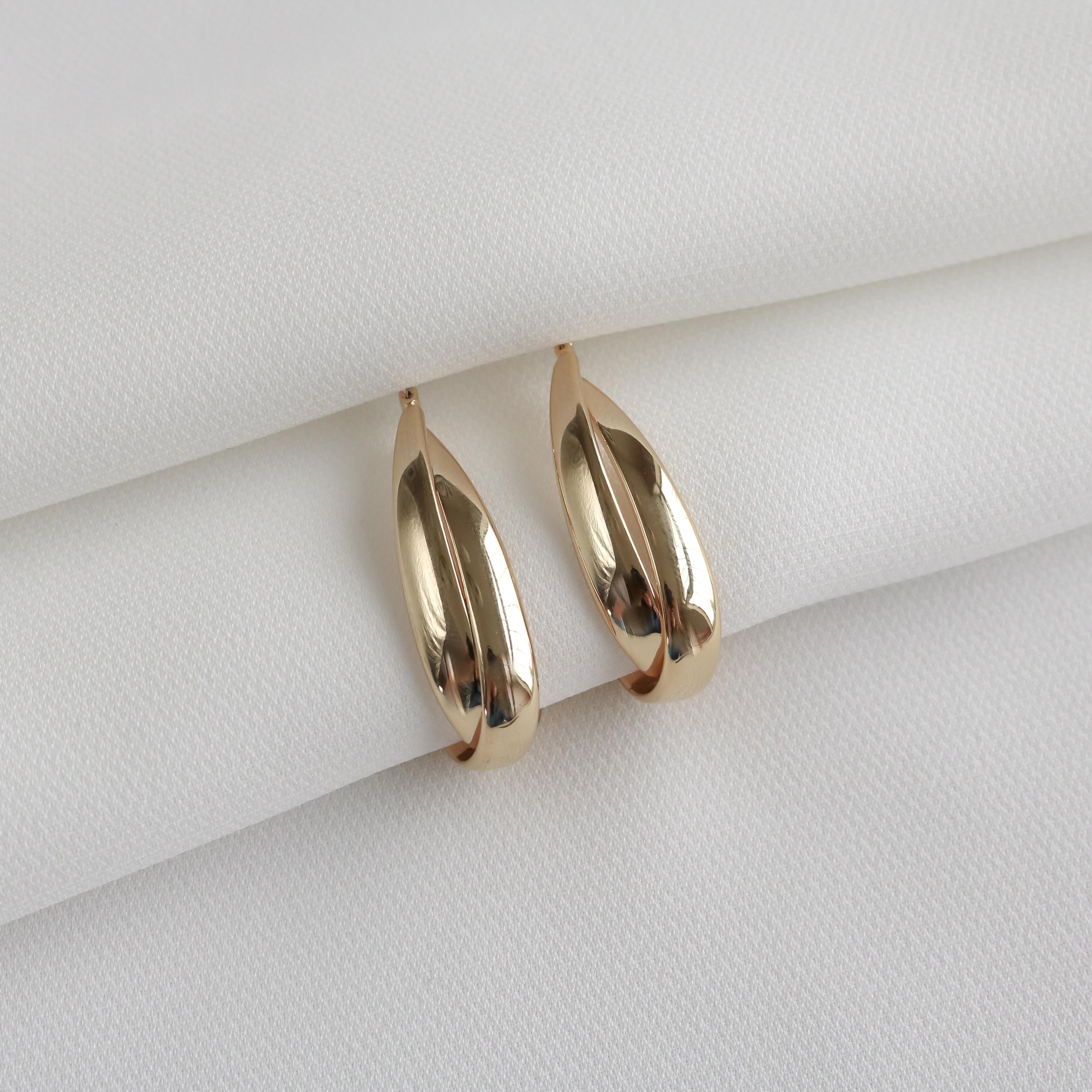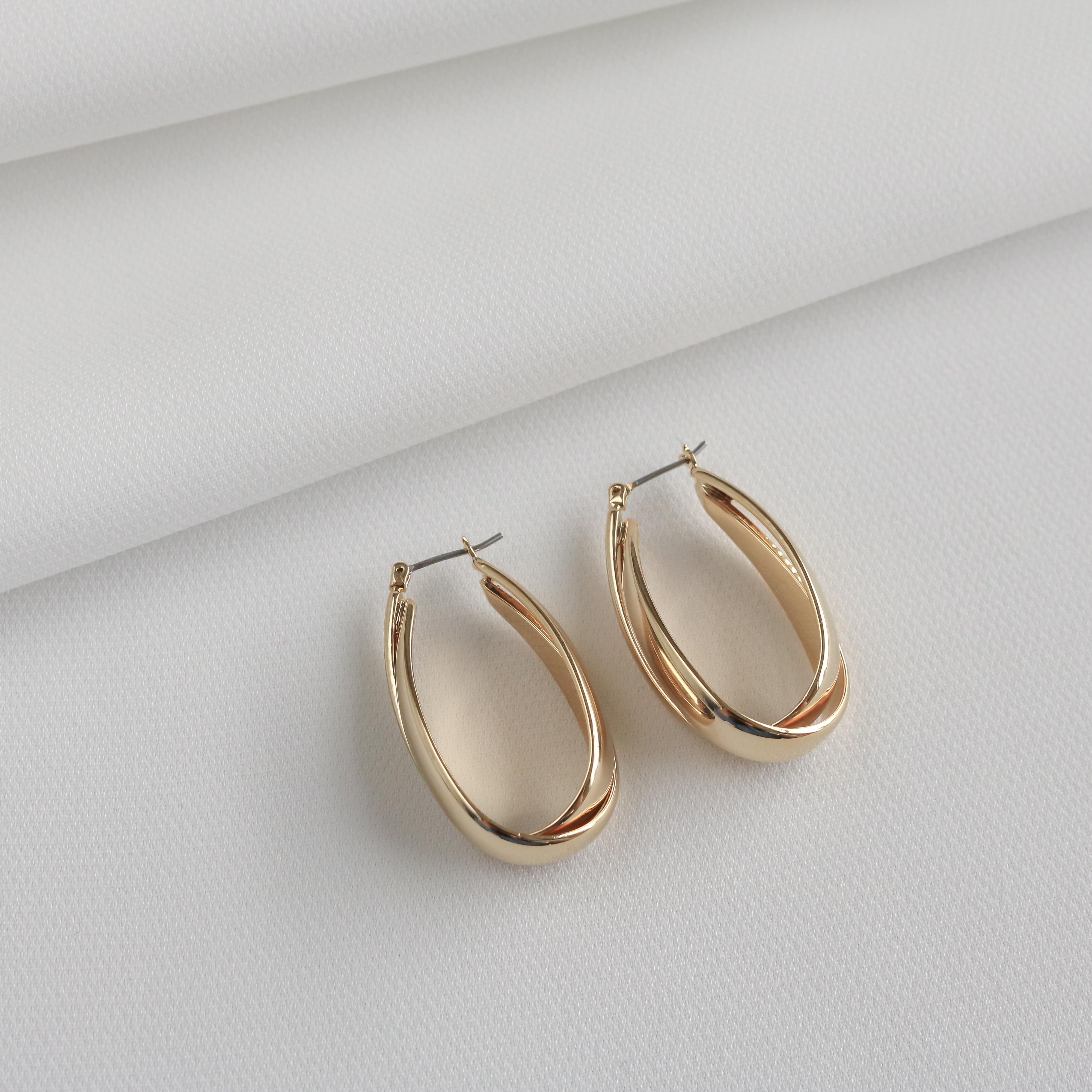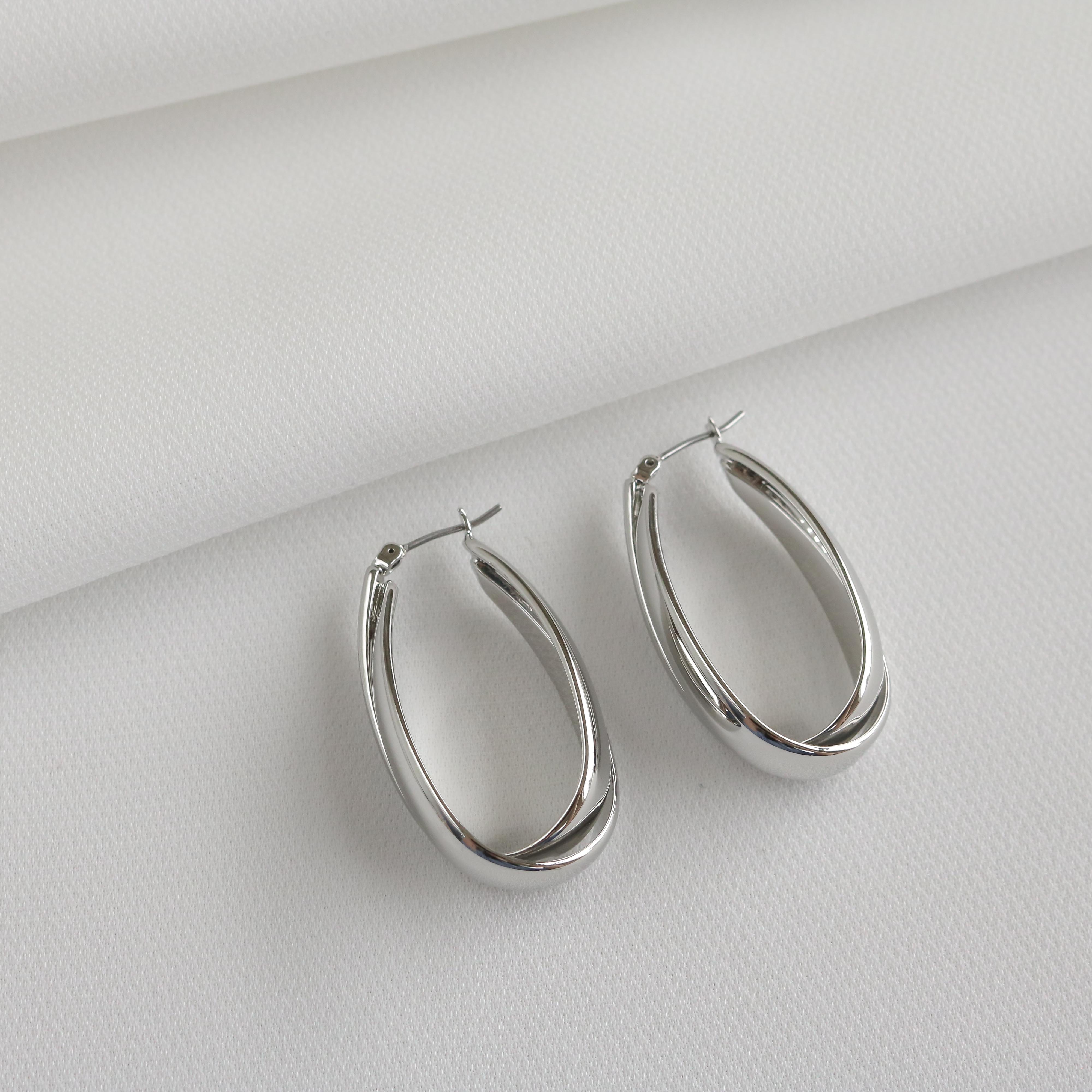 These stunning earrings capture modern elegance. The two intertwining hoops are finished with a smooth reflective beauty that you will lose yourself in.