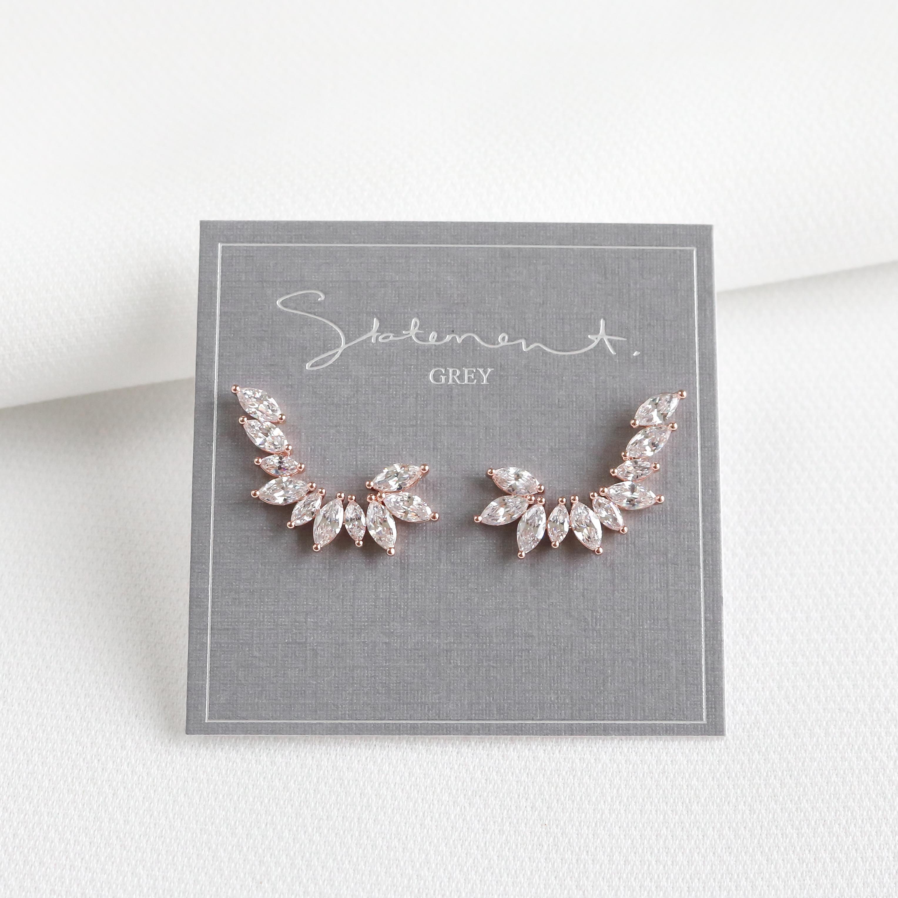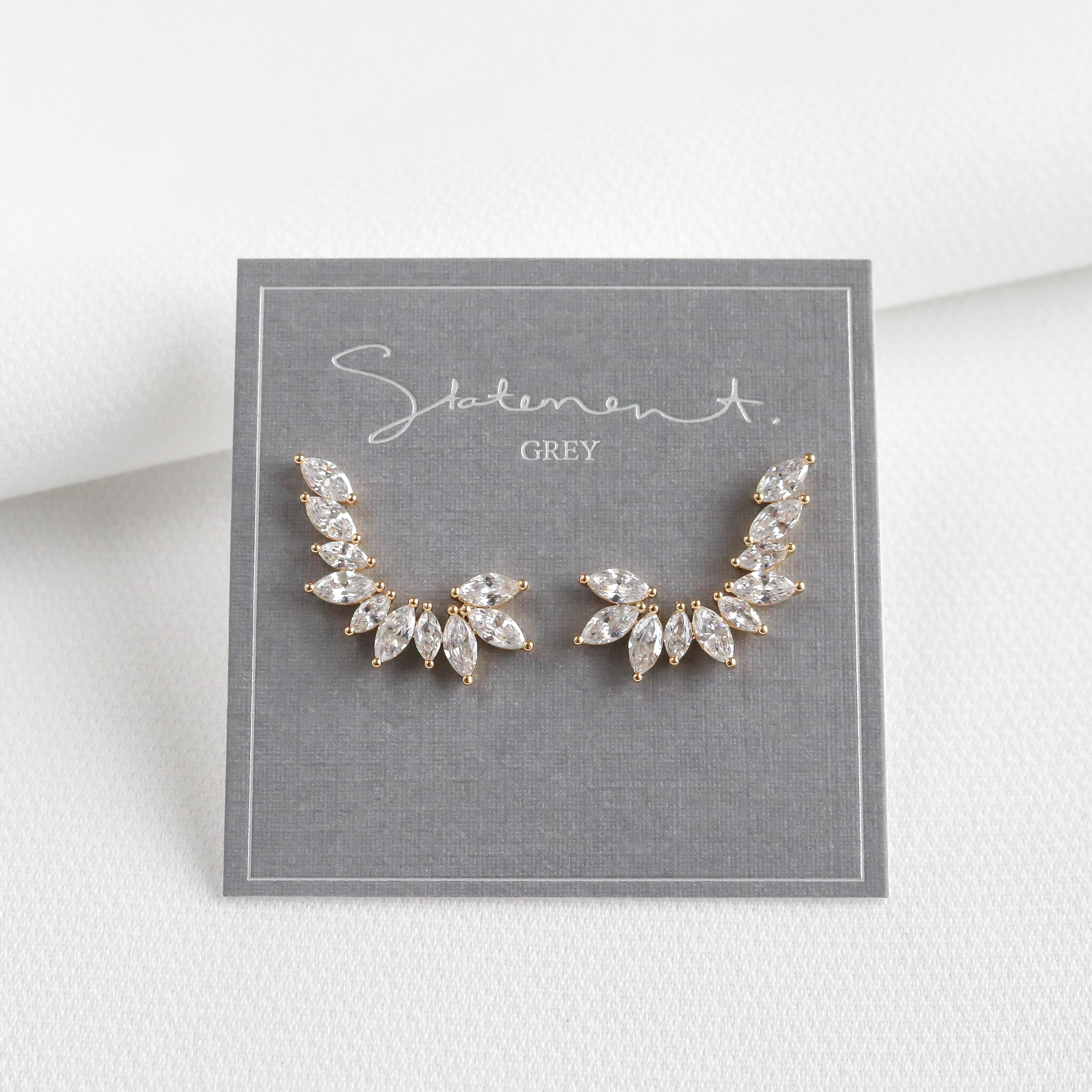 The Adriana earrings are not your regular ear climbers. The different sizes of marquise crystals play off one another to create an alluring statement.