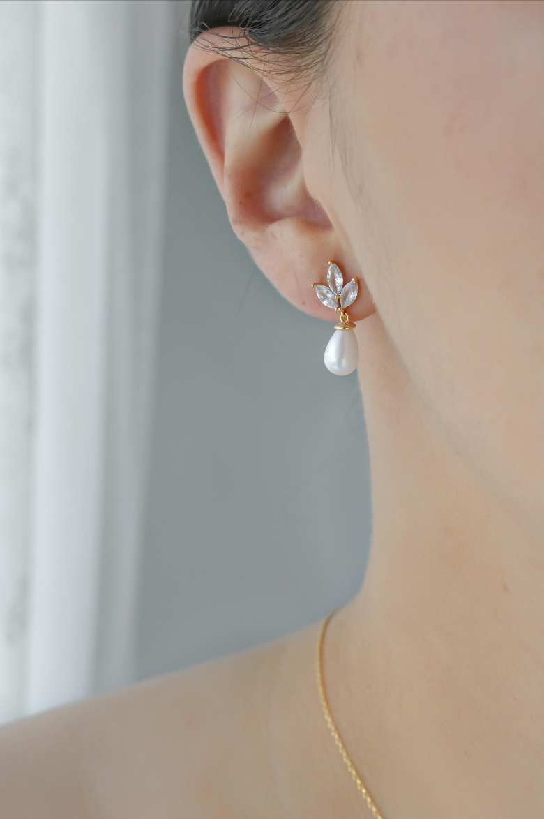 By using our favourite marquise crystals to make up this simple, yet classic design, we present the Aria Pearl Earrings. The Aria features a 3 marquise crystal pattern finished with a long, hanging white pearl. This charming earring is perfect for that effortless minimal and modern clean look.