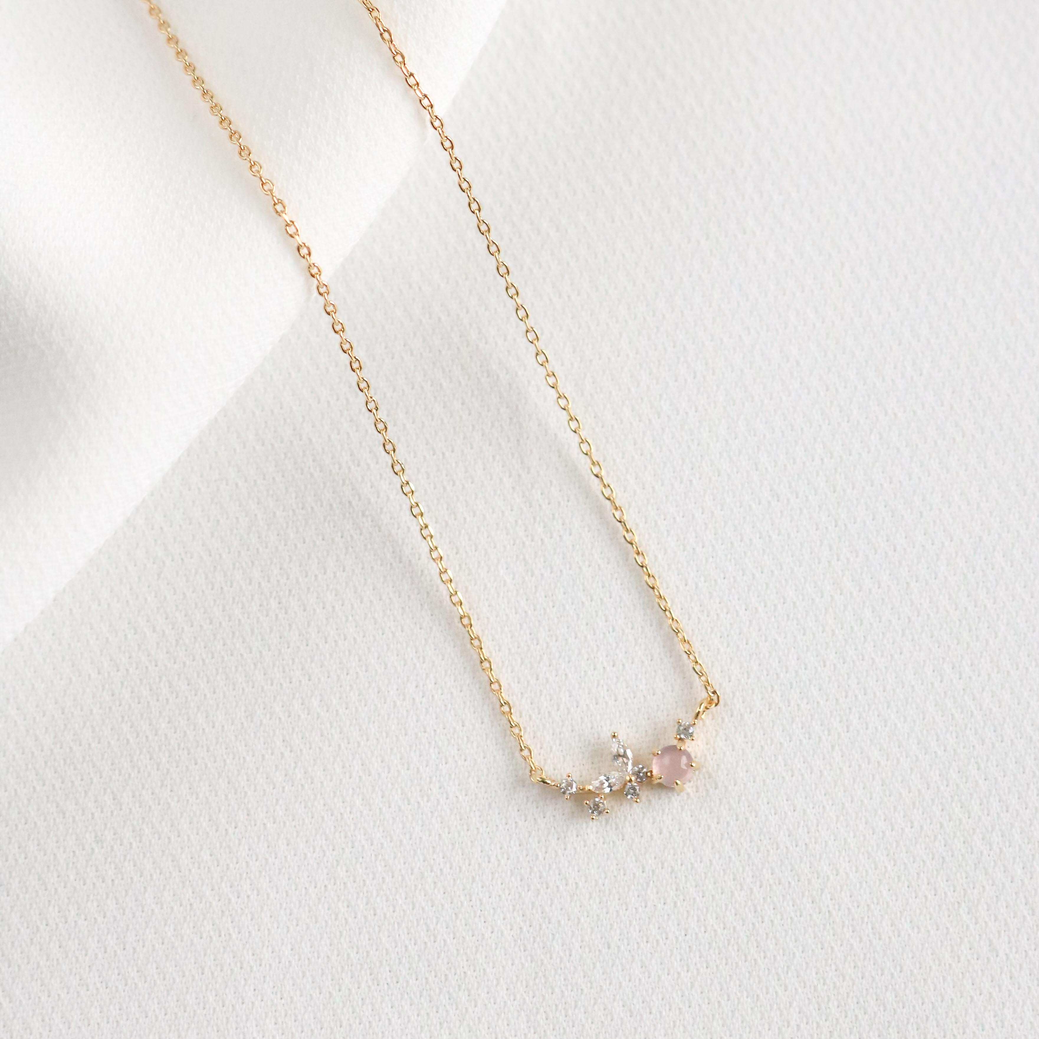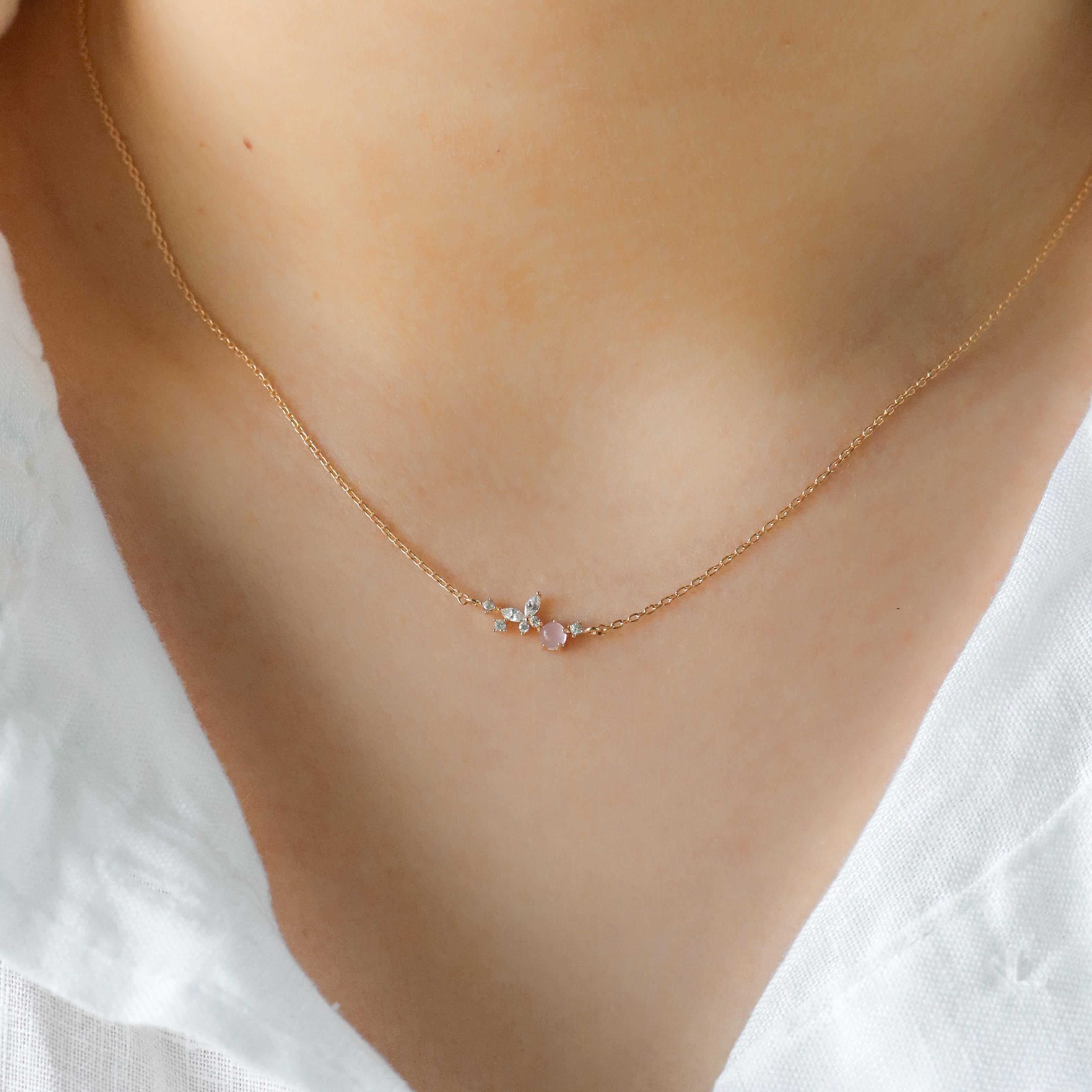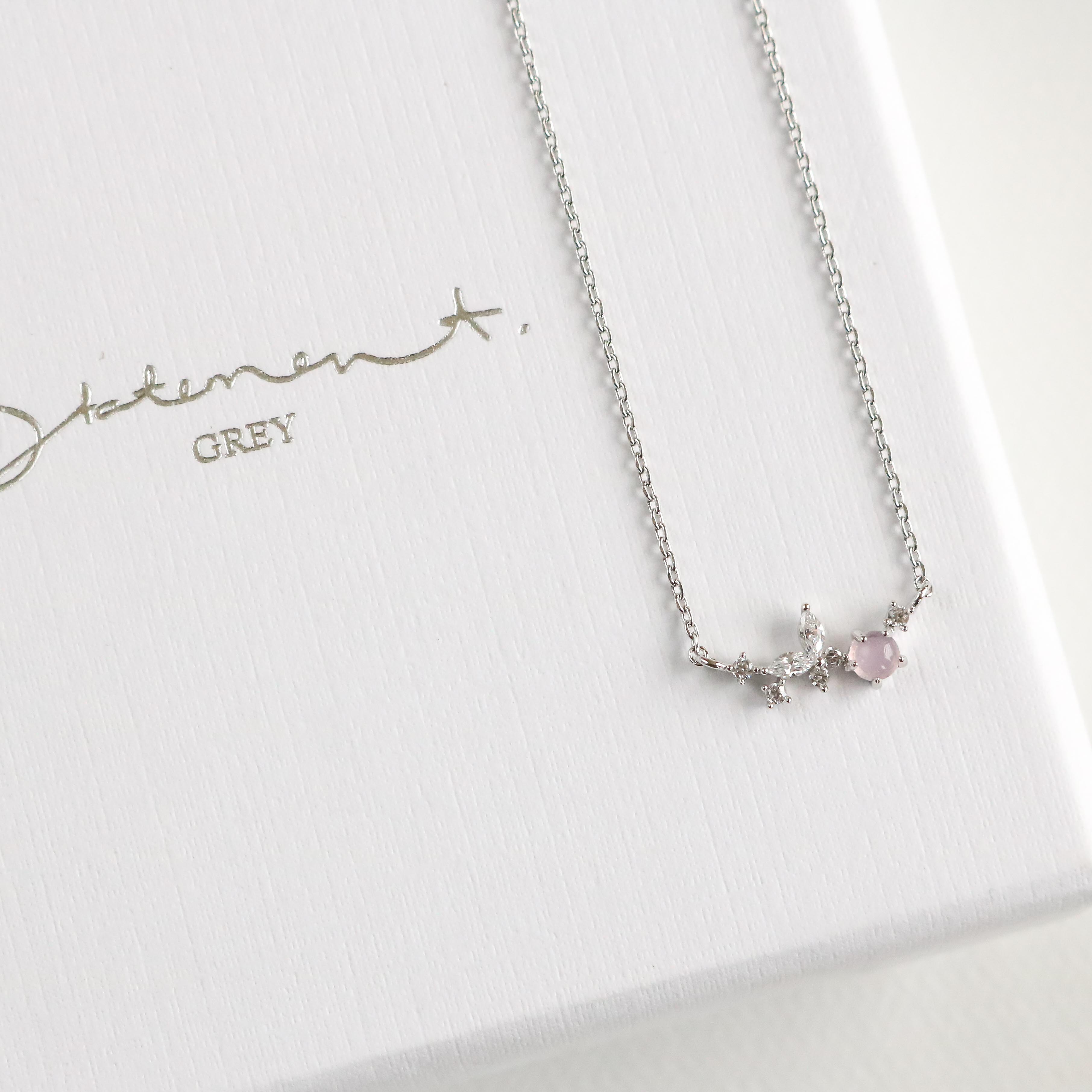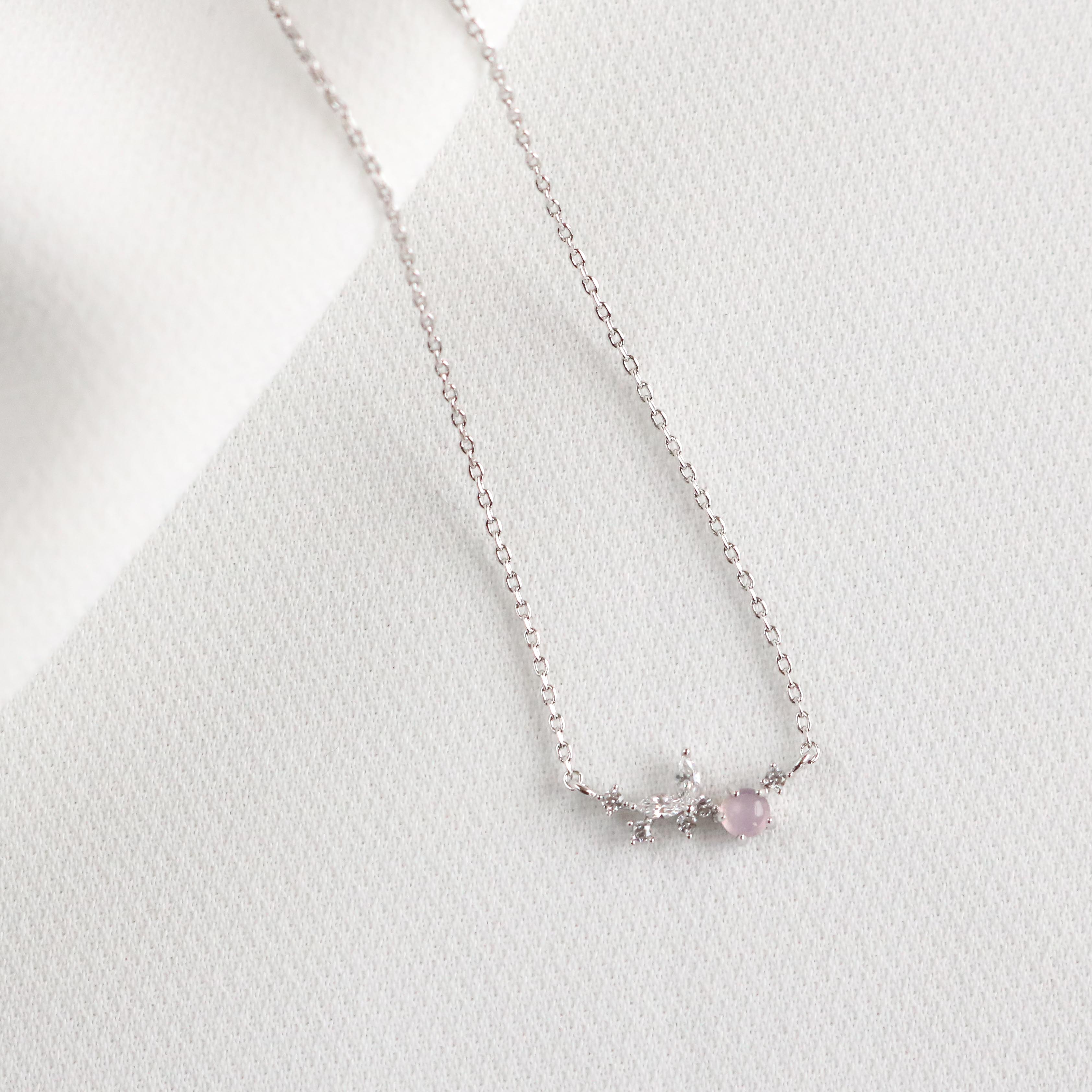 A feminine blush pink accent stone paired with a charming butterfly design, leaving a sparkle as it flutters around.
