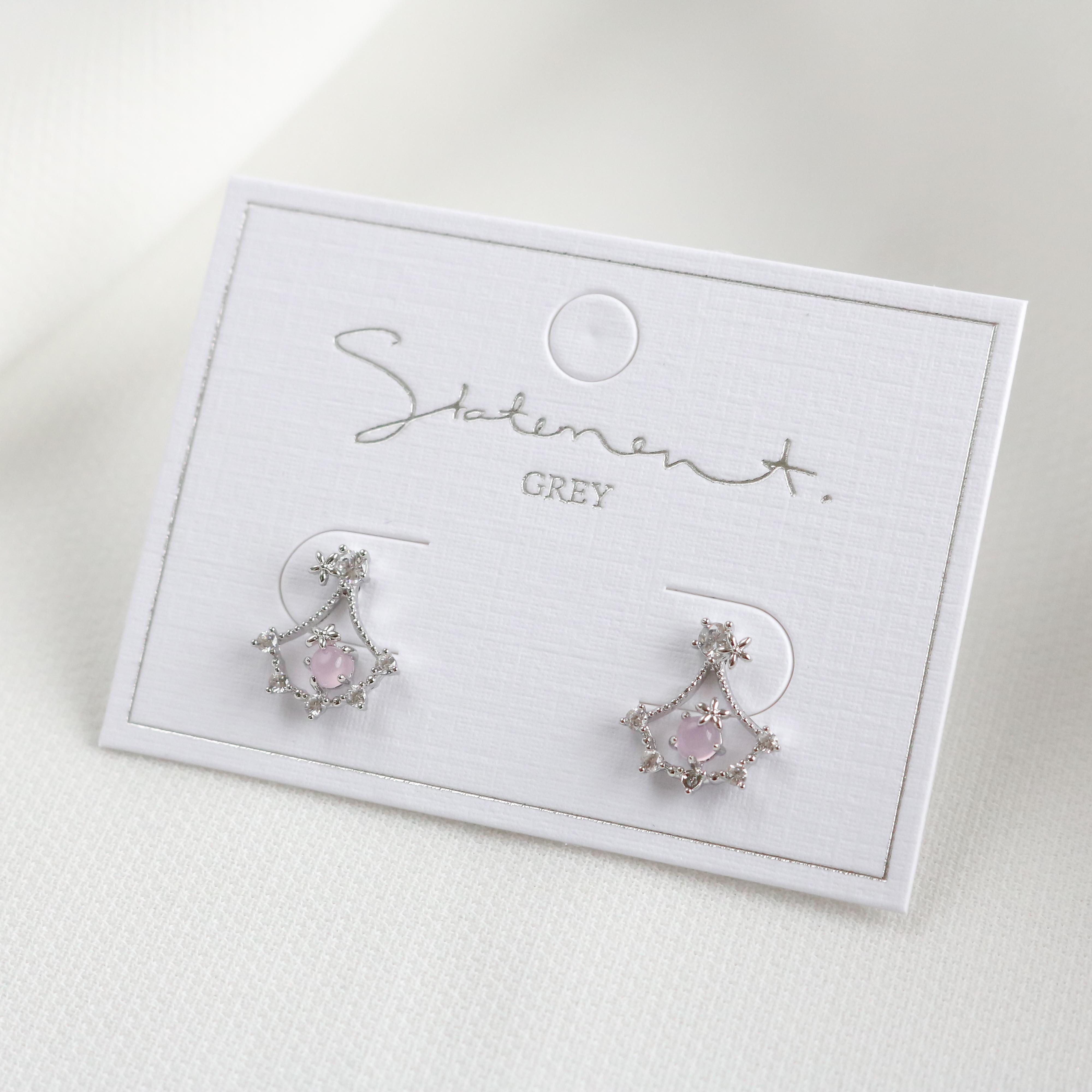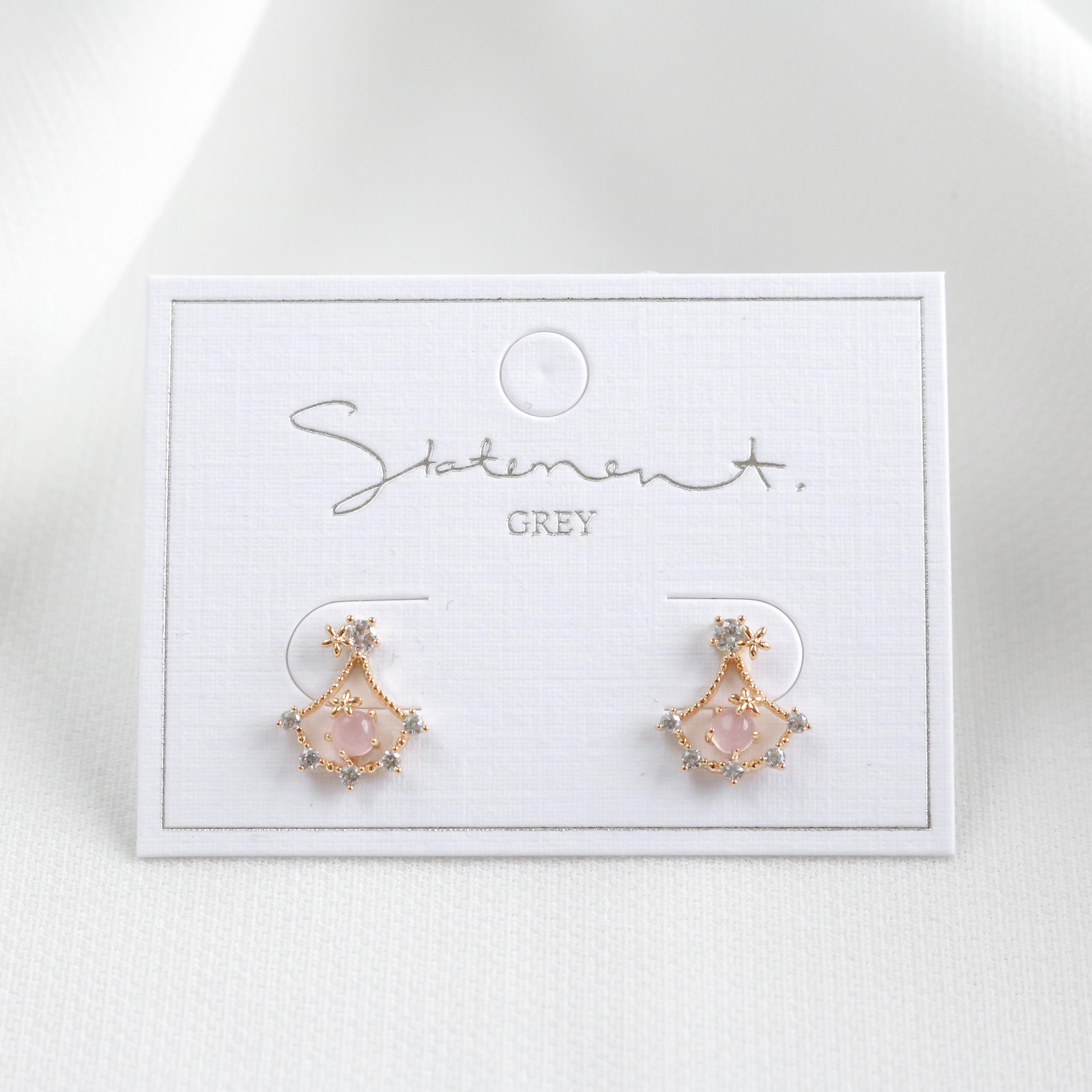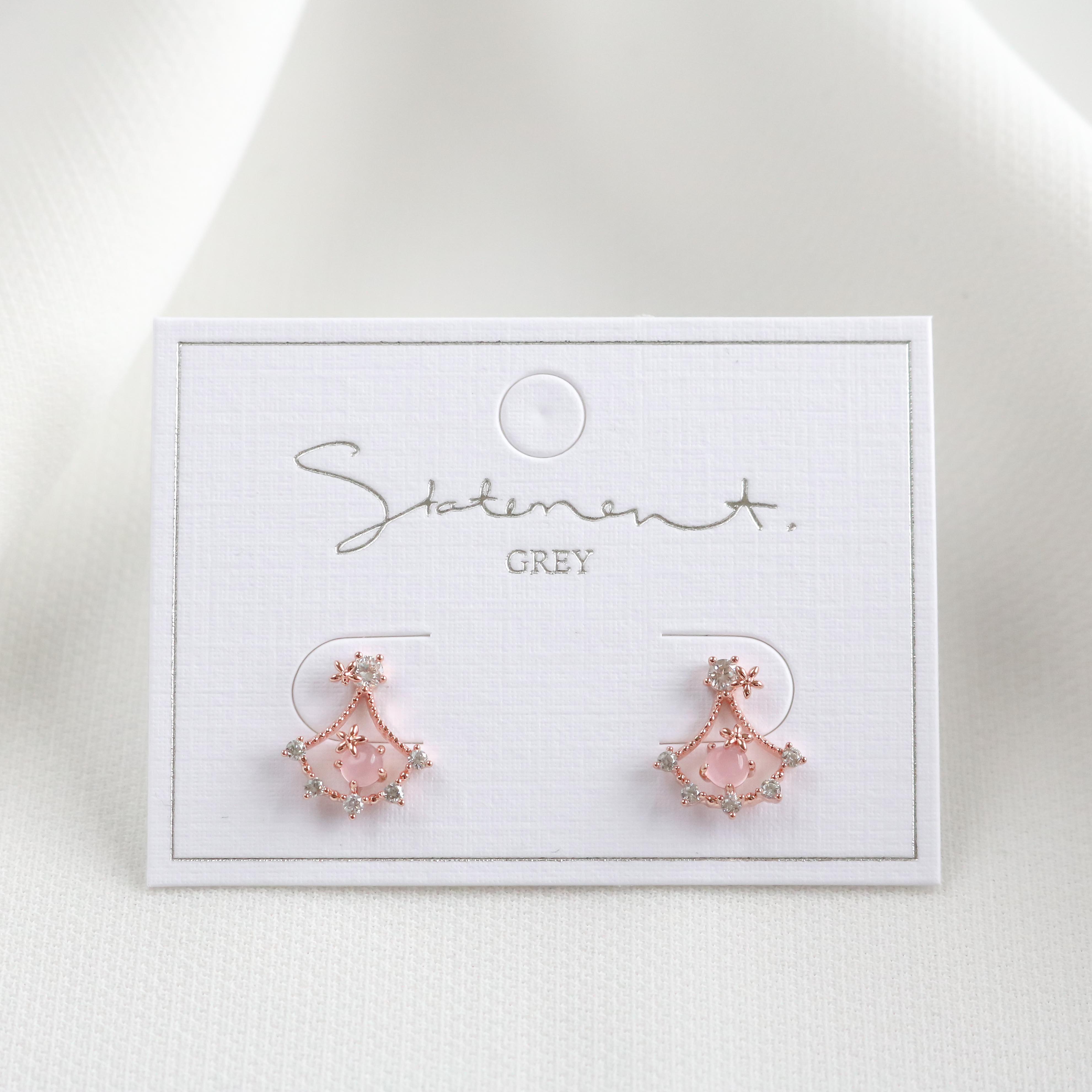 These unique earrings have a titillating design that draws attention to their pink hue and circle crystals that are embellished with dainty stars.