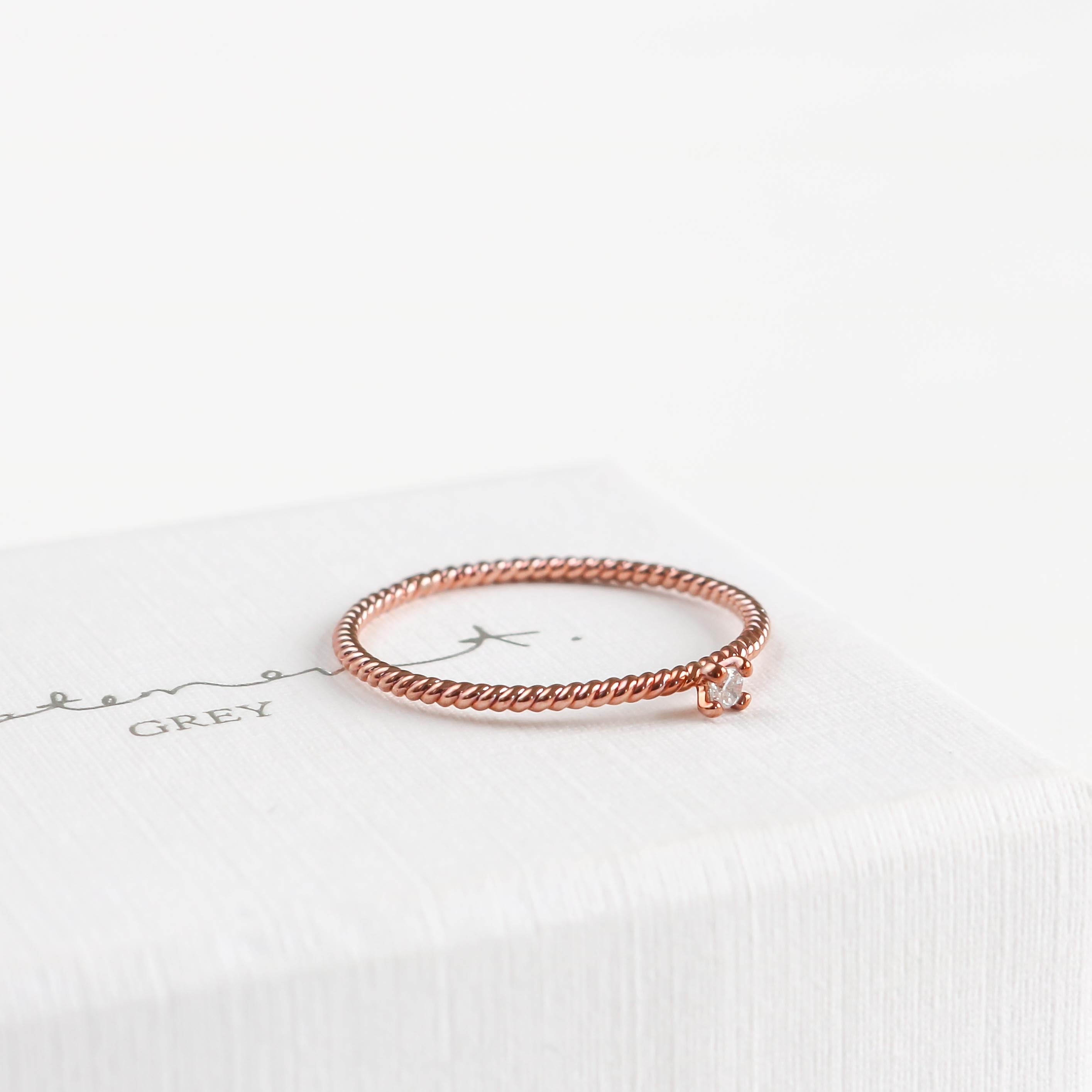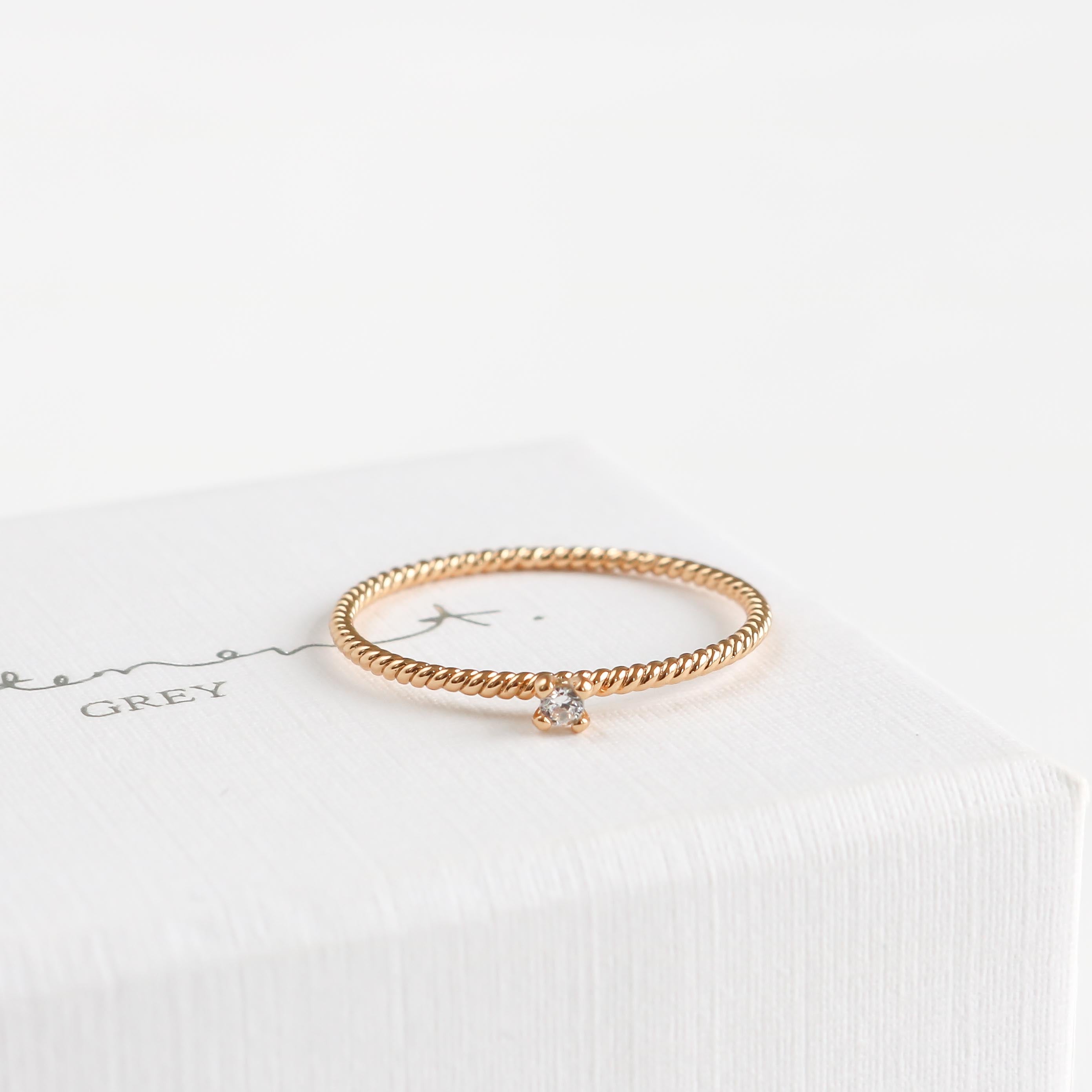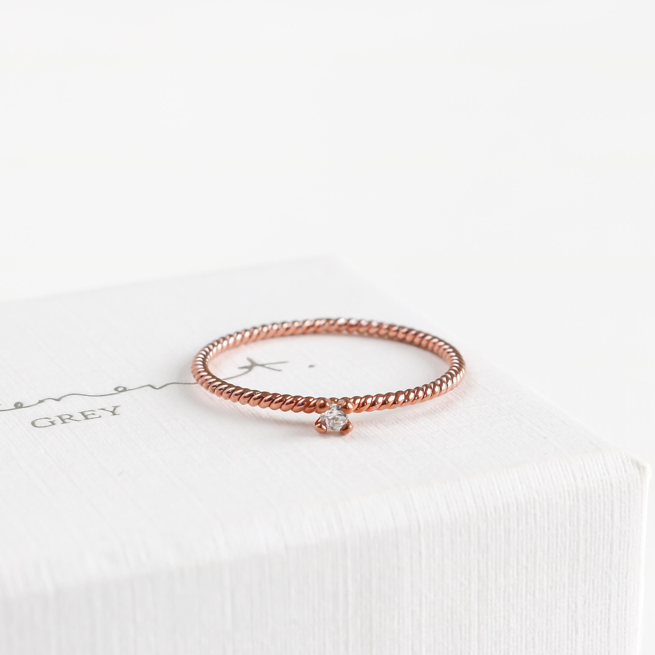 The Clermont ring features a petite, round crystal. Embellished on a twisted band, this darling ring adds a simple, yet beautiful, feminine finish to your look.