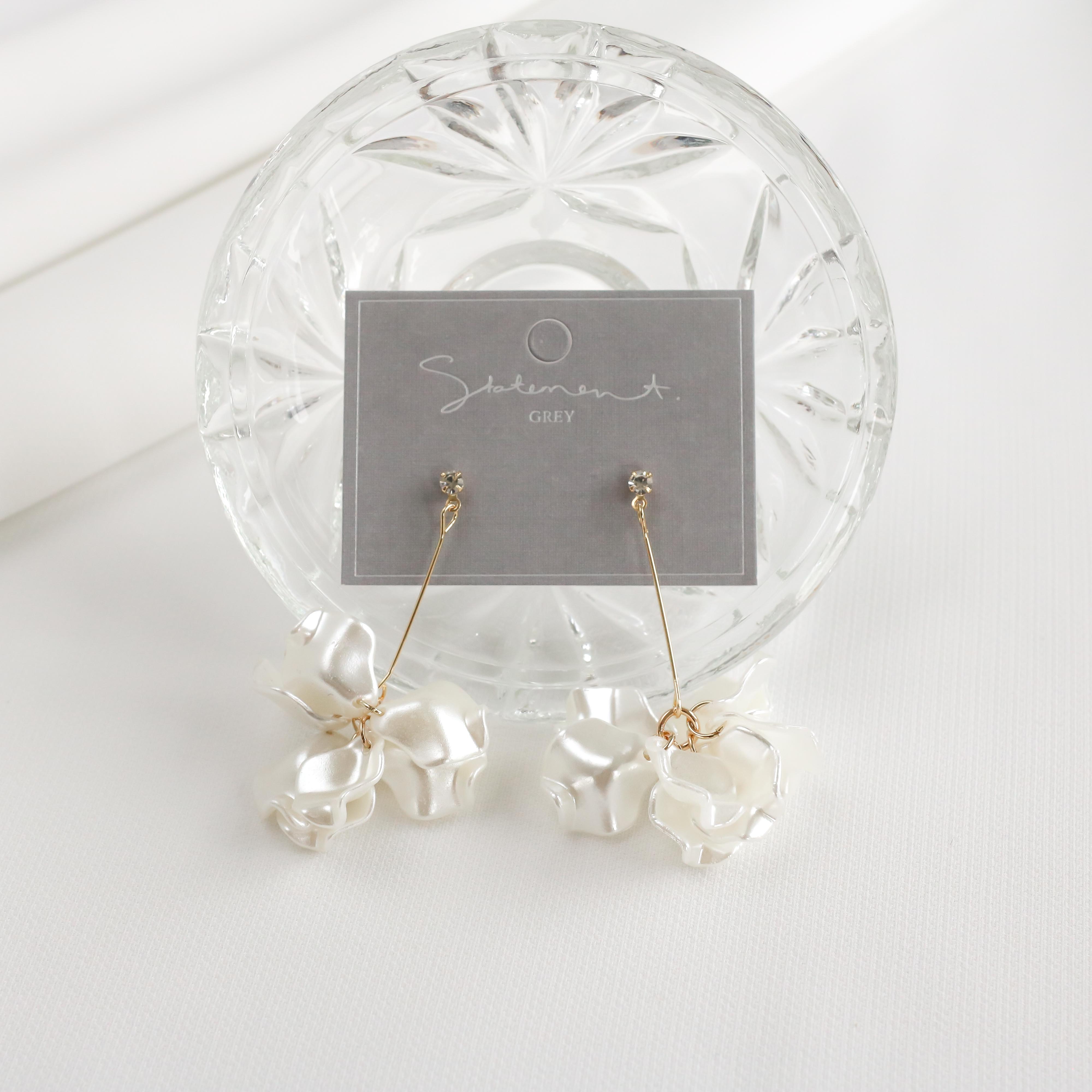 The Marigold Petal Drop Earrings showcase eight gleaming curved flower petals embellished with a sparkling crystal. They're a must-have for the contemporary bride or bridesmaid, bringing a whimsical botanical flair to any outfit.