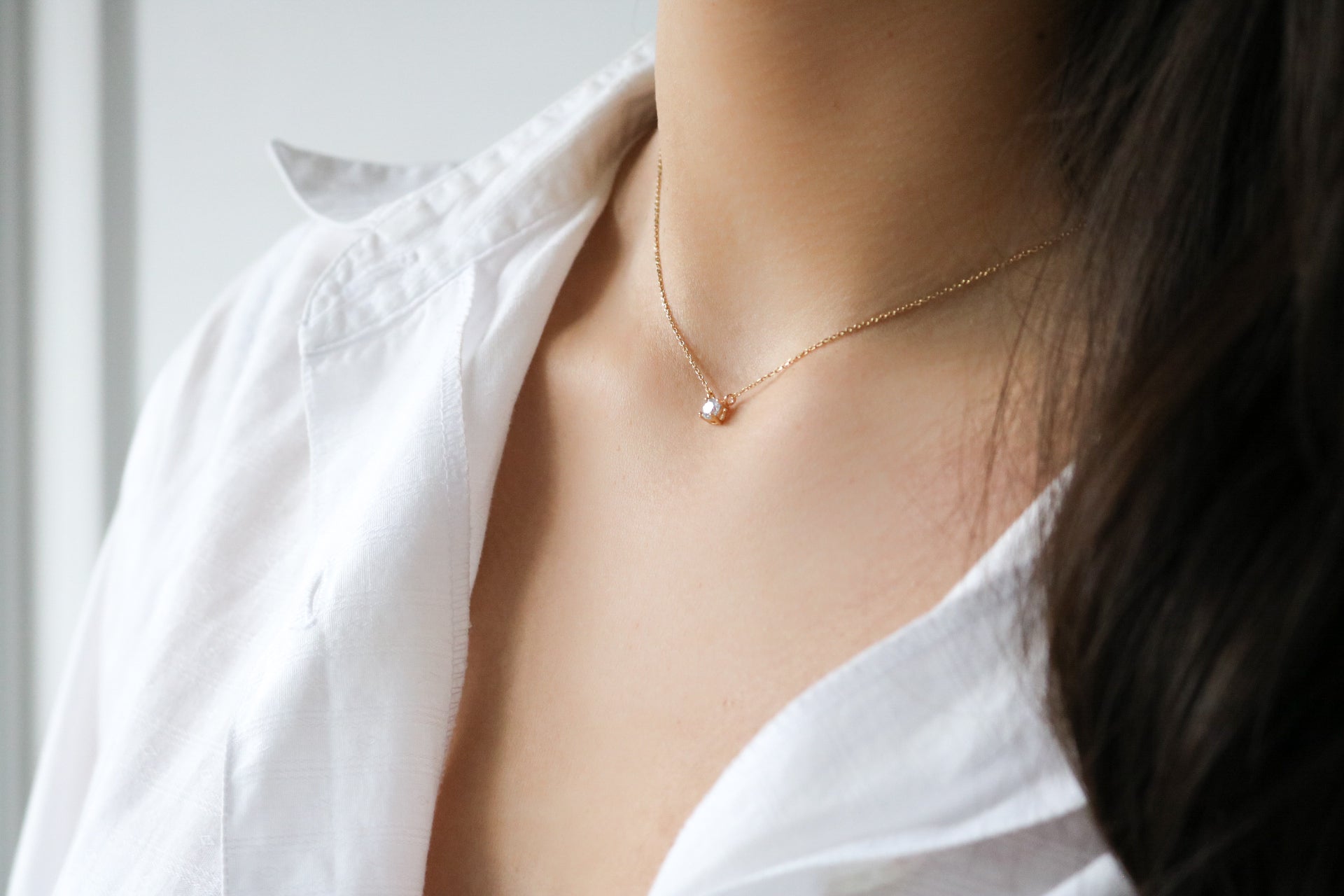 Perfect for layering with other necklaces, the Round Brilliant Cut Necklace is the most popular shaped crystal. This necklaces also come with a small crystal pendant in the back so you sparkle from all sides!