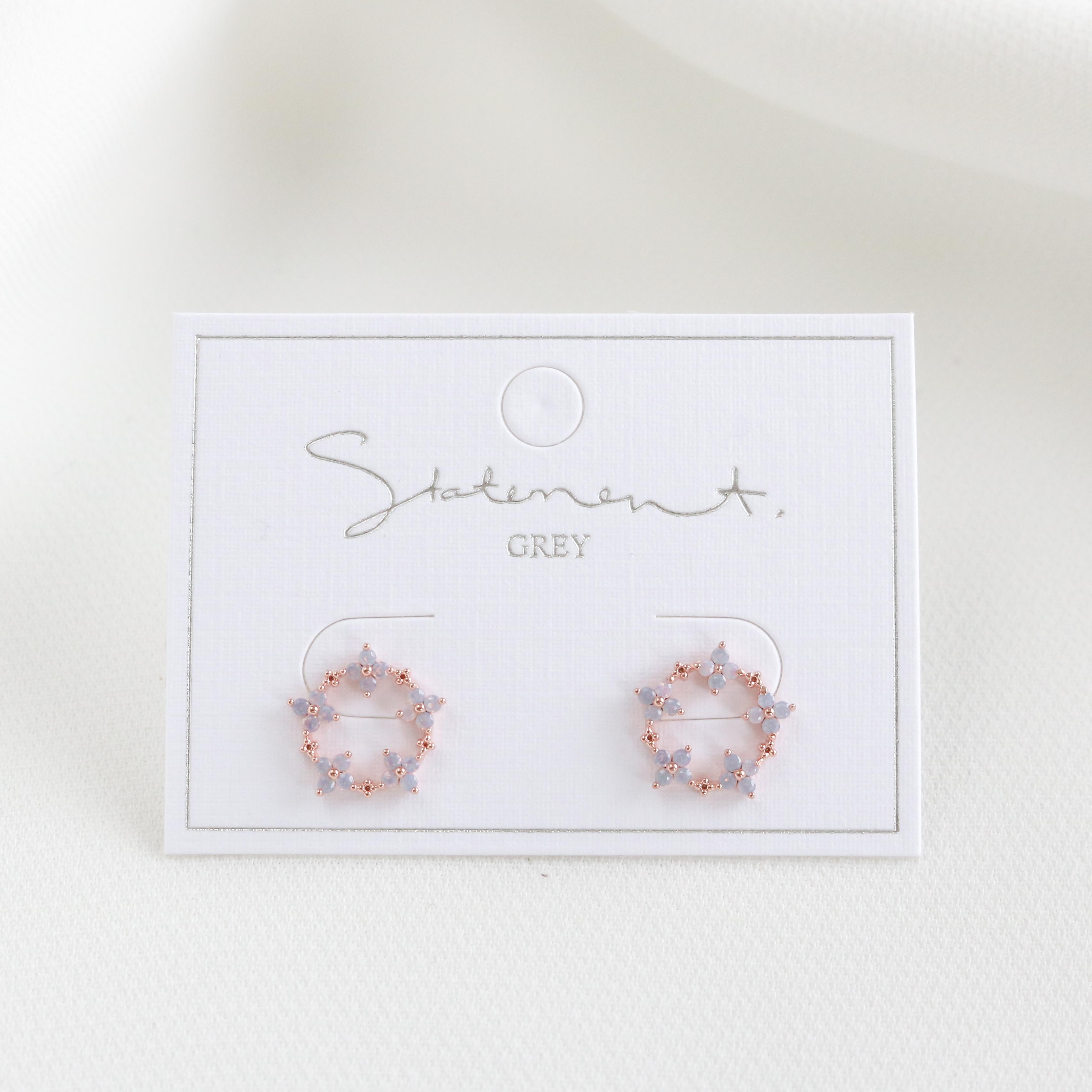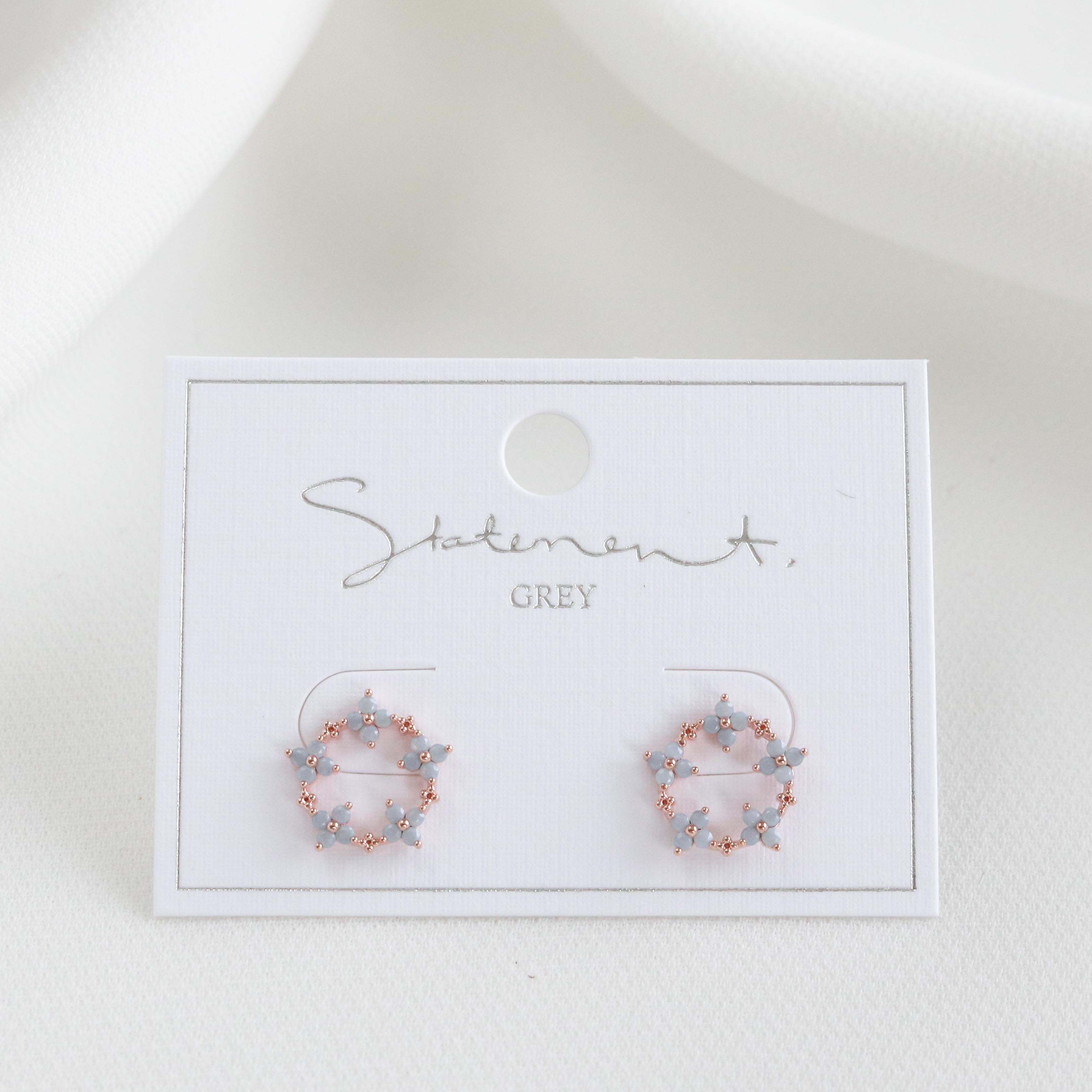 For the lovers of the cherry blossom season, this Blossom collection is for you. These front hoop earrings feature 4 flowers with beaded floral detailing in a wreath pattern.  They come in 2 stone colours with your choice of opaque blue or subtle glistening pink.