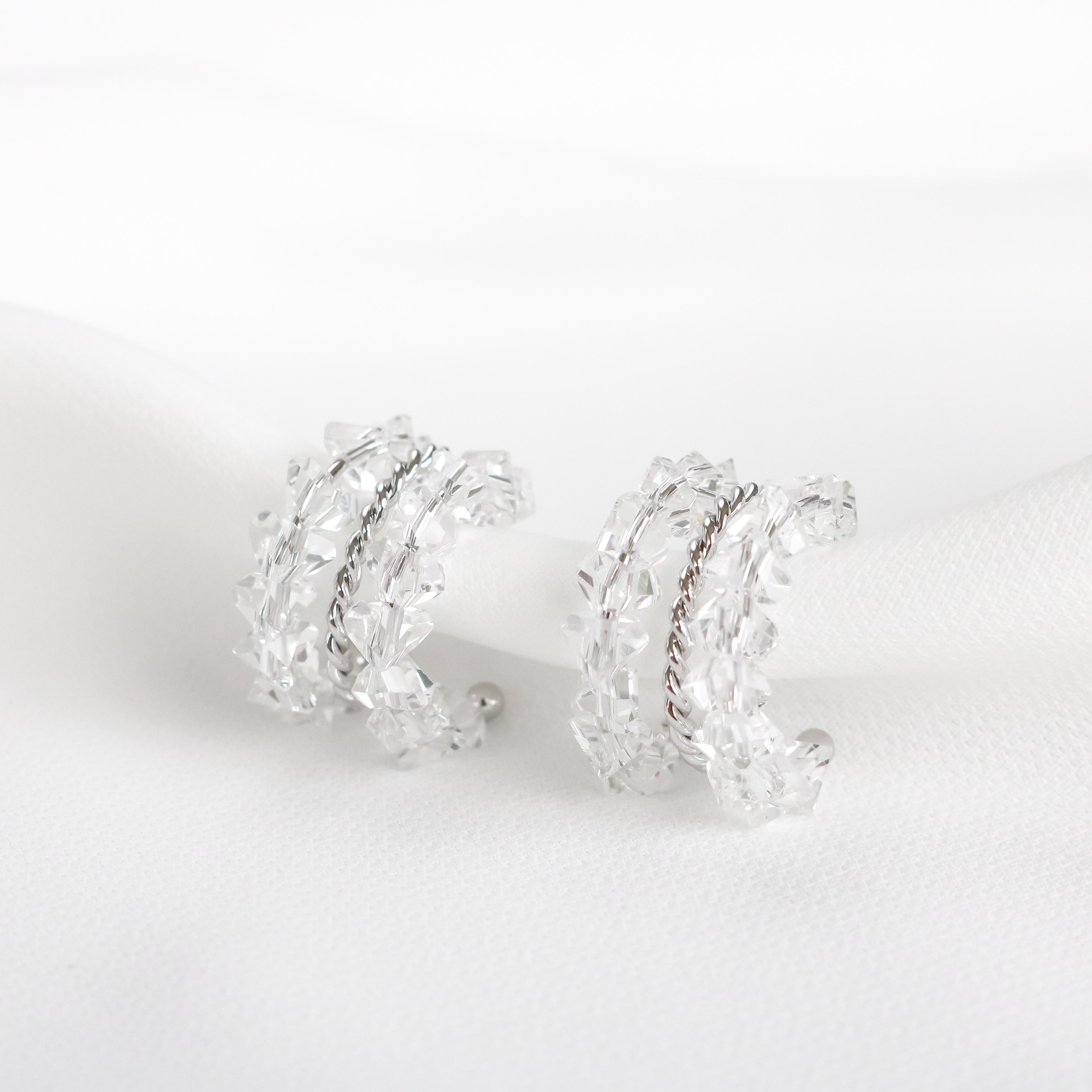 These bold earrings are hand beaded with beautiful, glistening beads and finished with an intricate, twisted line in the centre. Bring out the boss babe in you.
