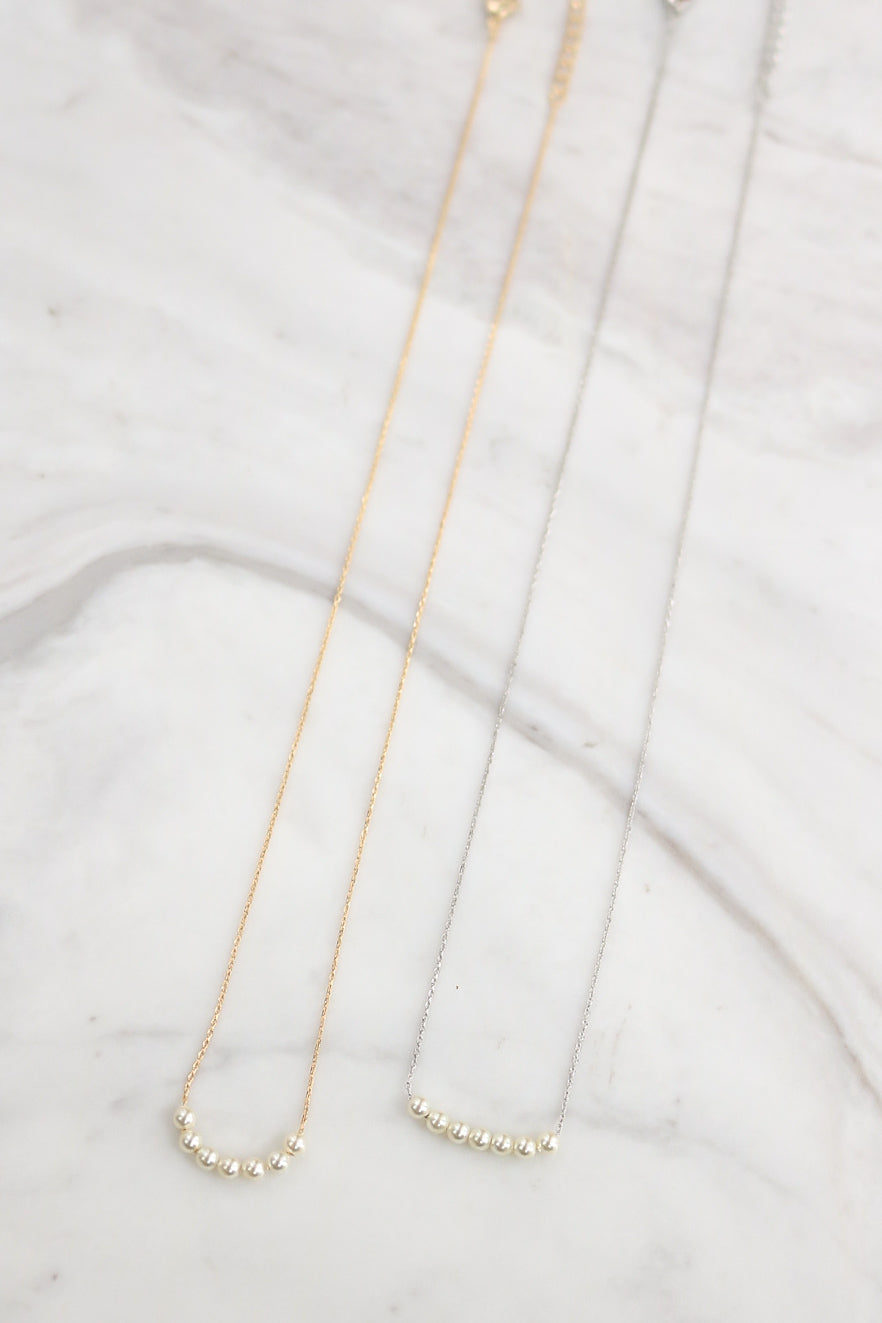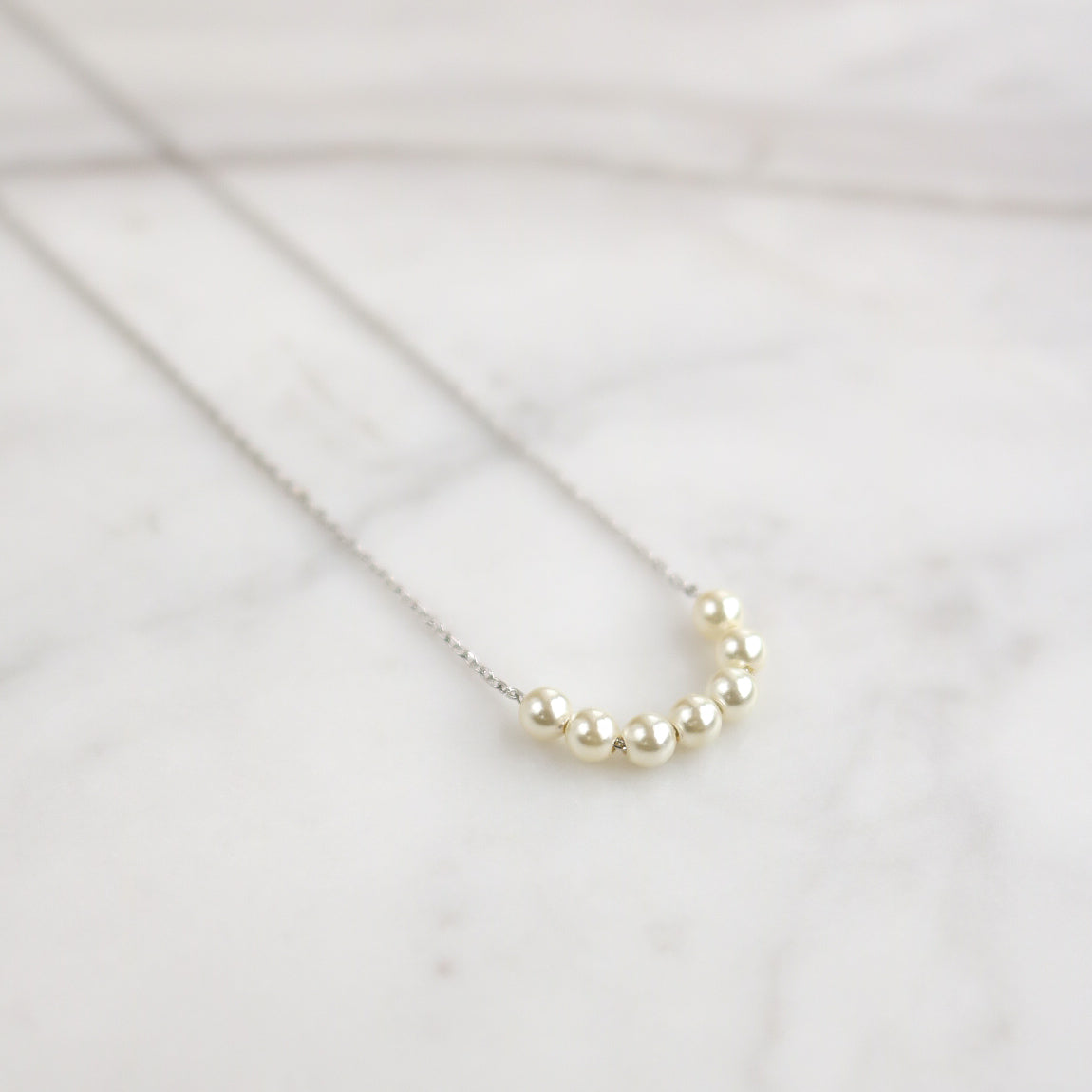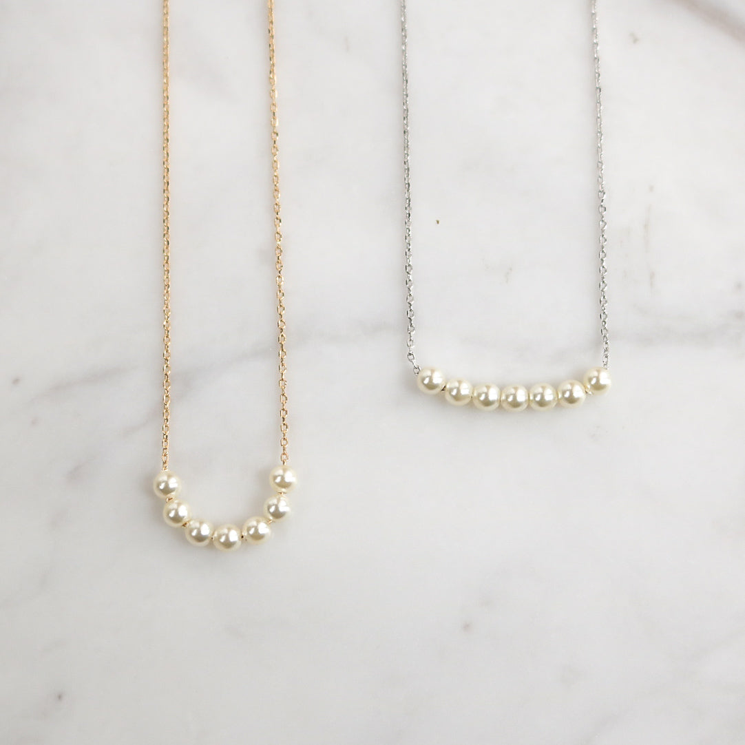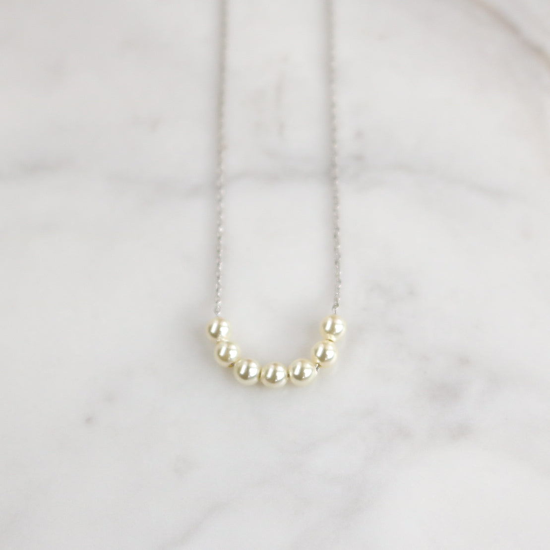 This simple and charming necklace has 7 moveable faux pearls, allowing you to change up your layering style or look lovely just by itself.
