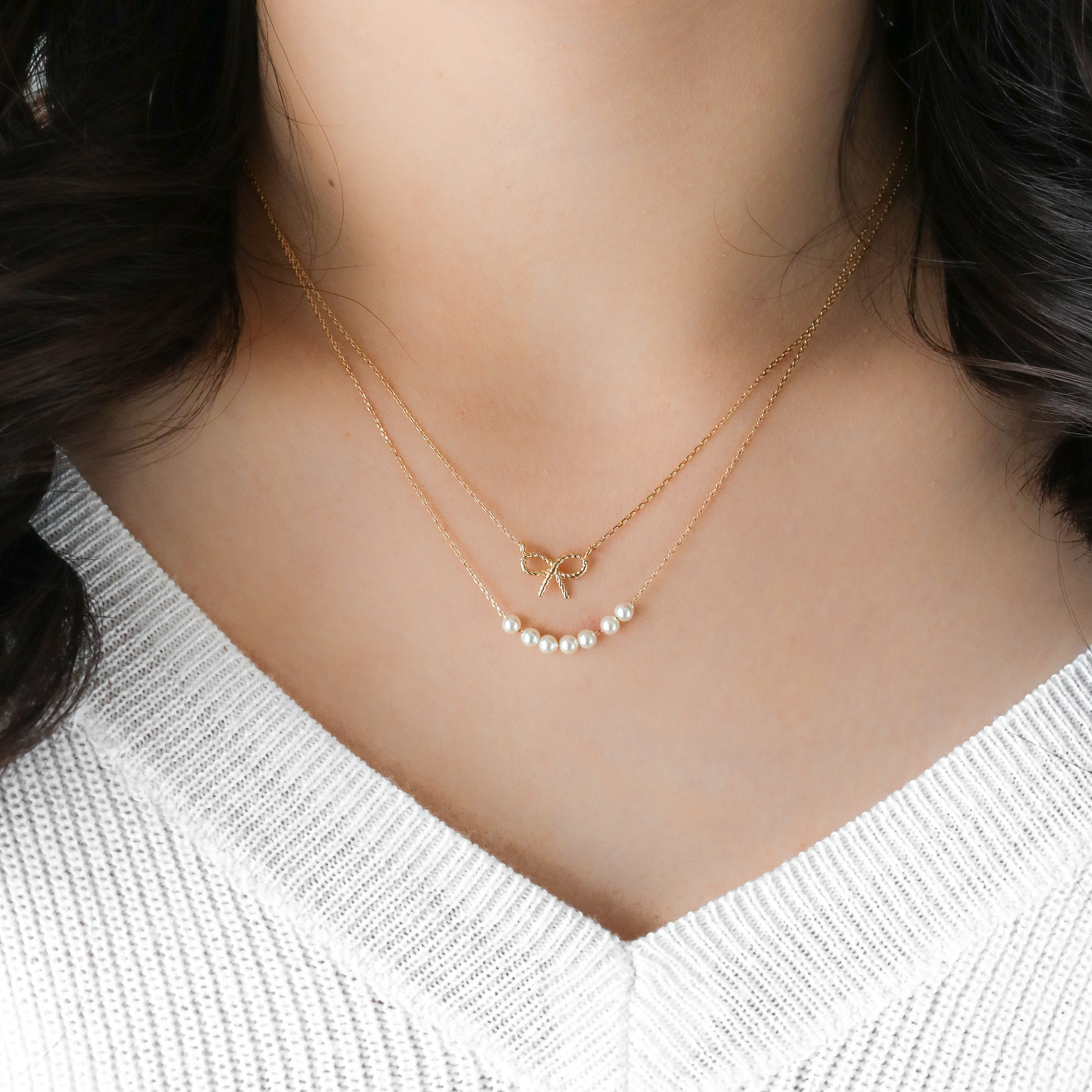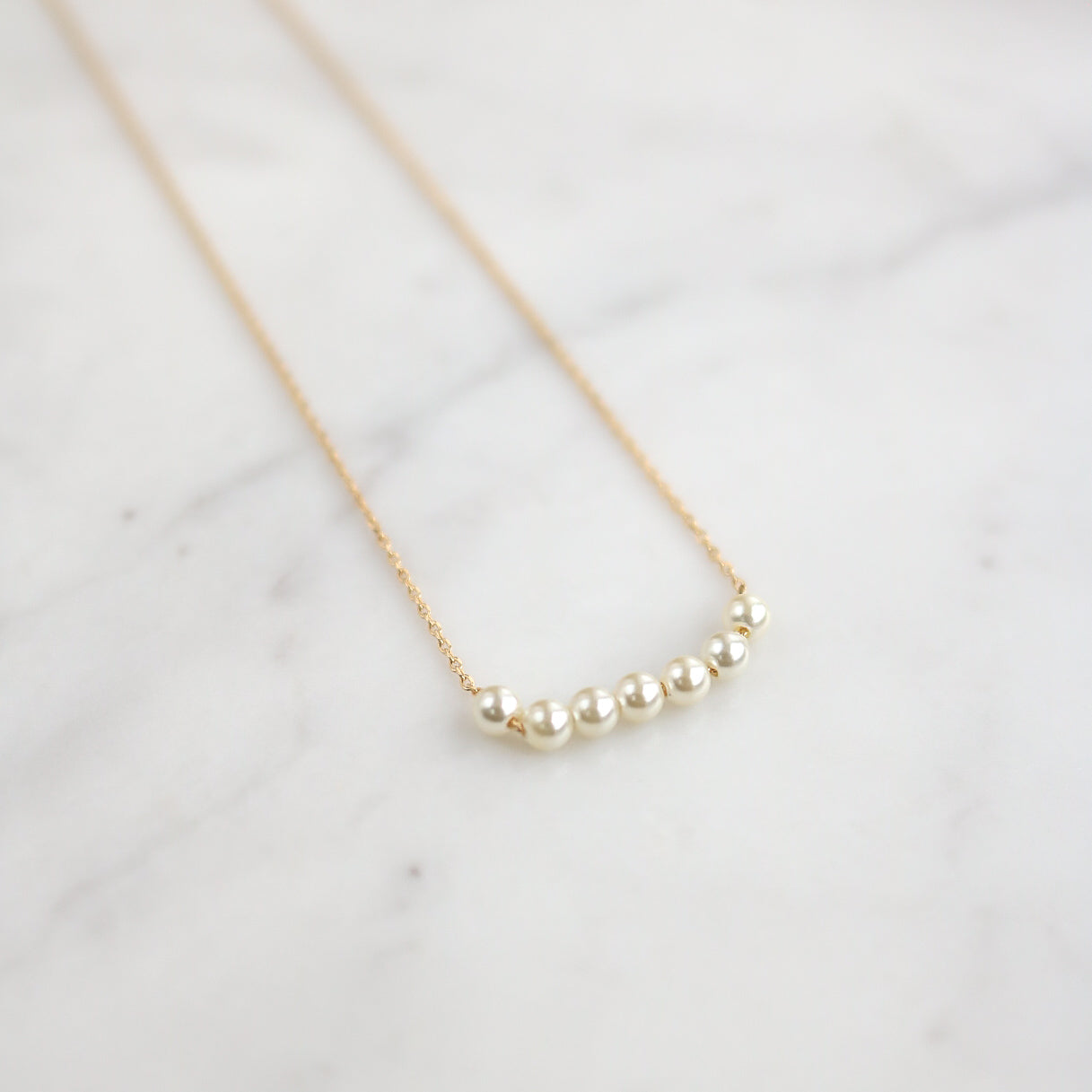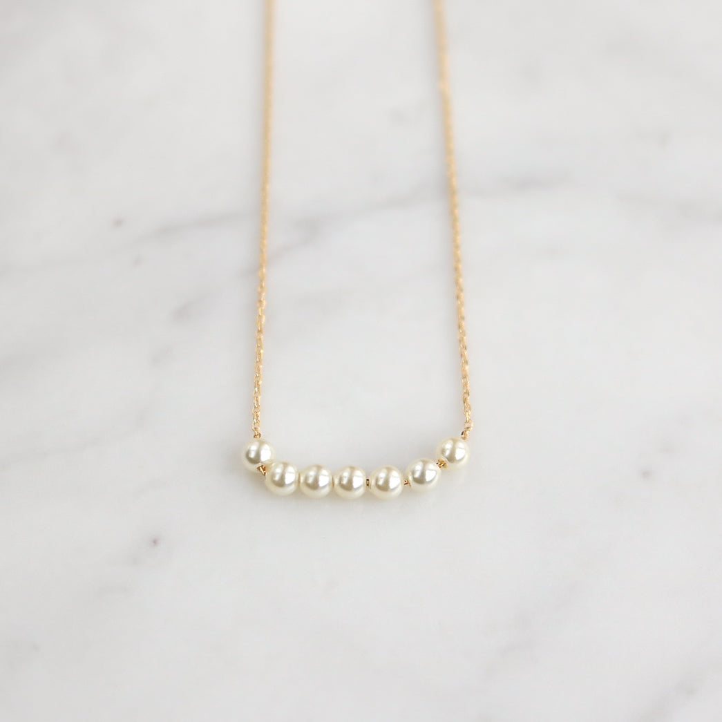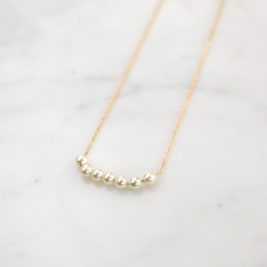 This simple and charming necklace has 7 moveable faux pearls, allowing you to change up your layering style or look lovely just by itself.