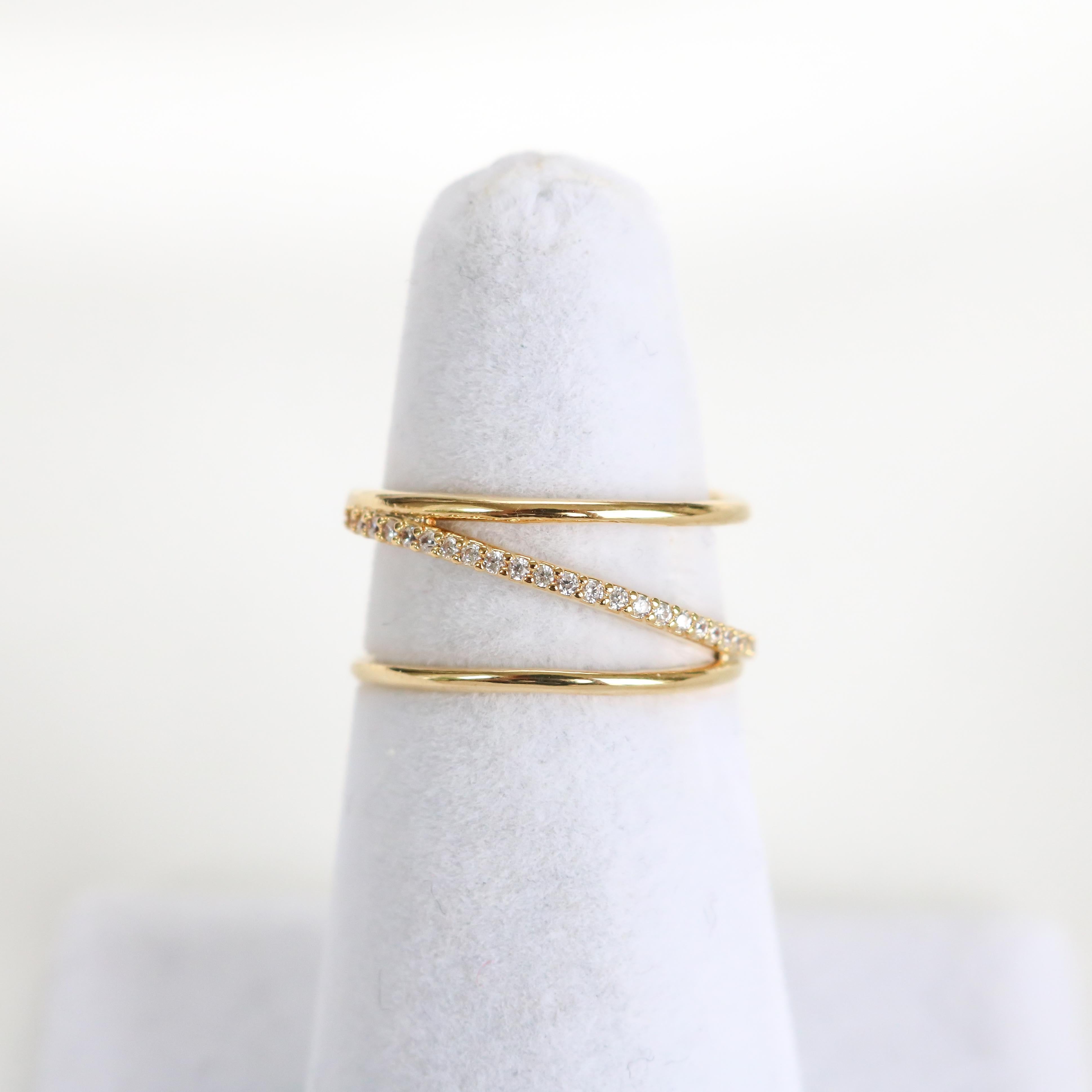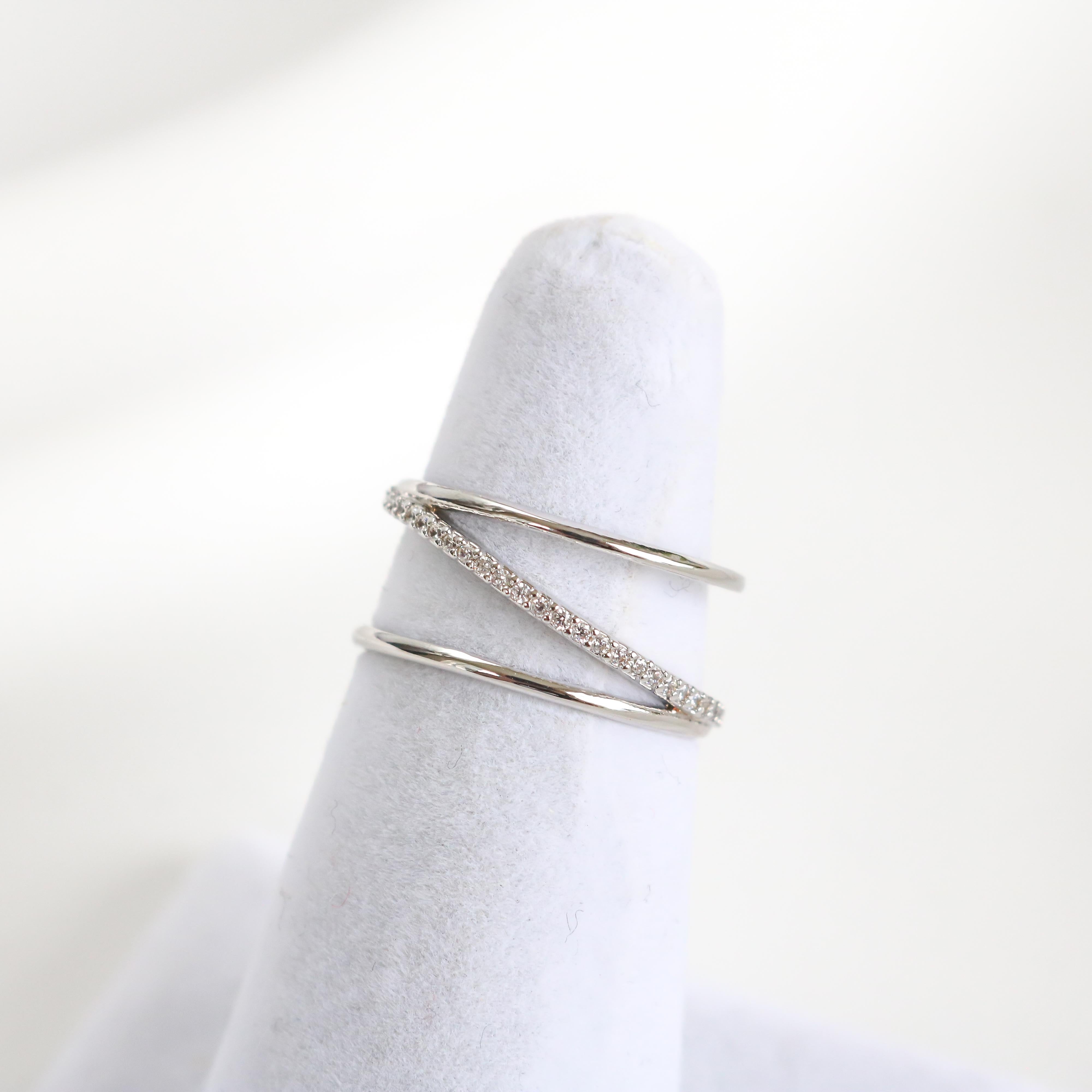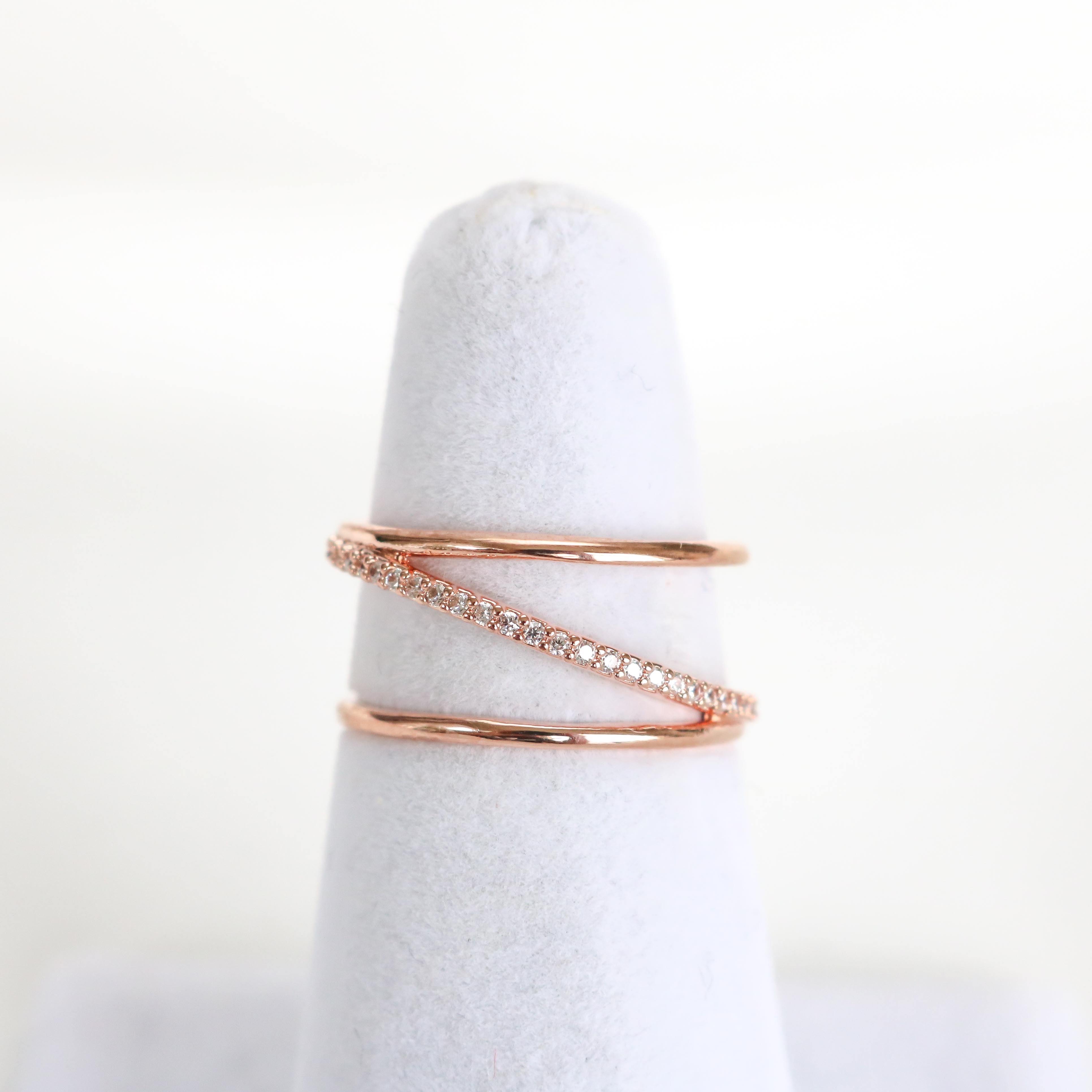 Modern and trendy, the Posey Line ring features a crystal-encrusted line that runs diagonally across the bands.