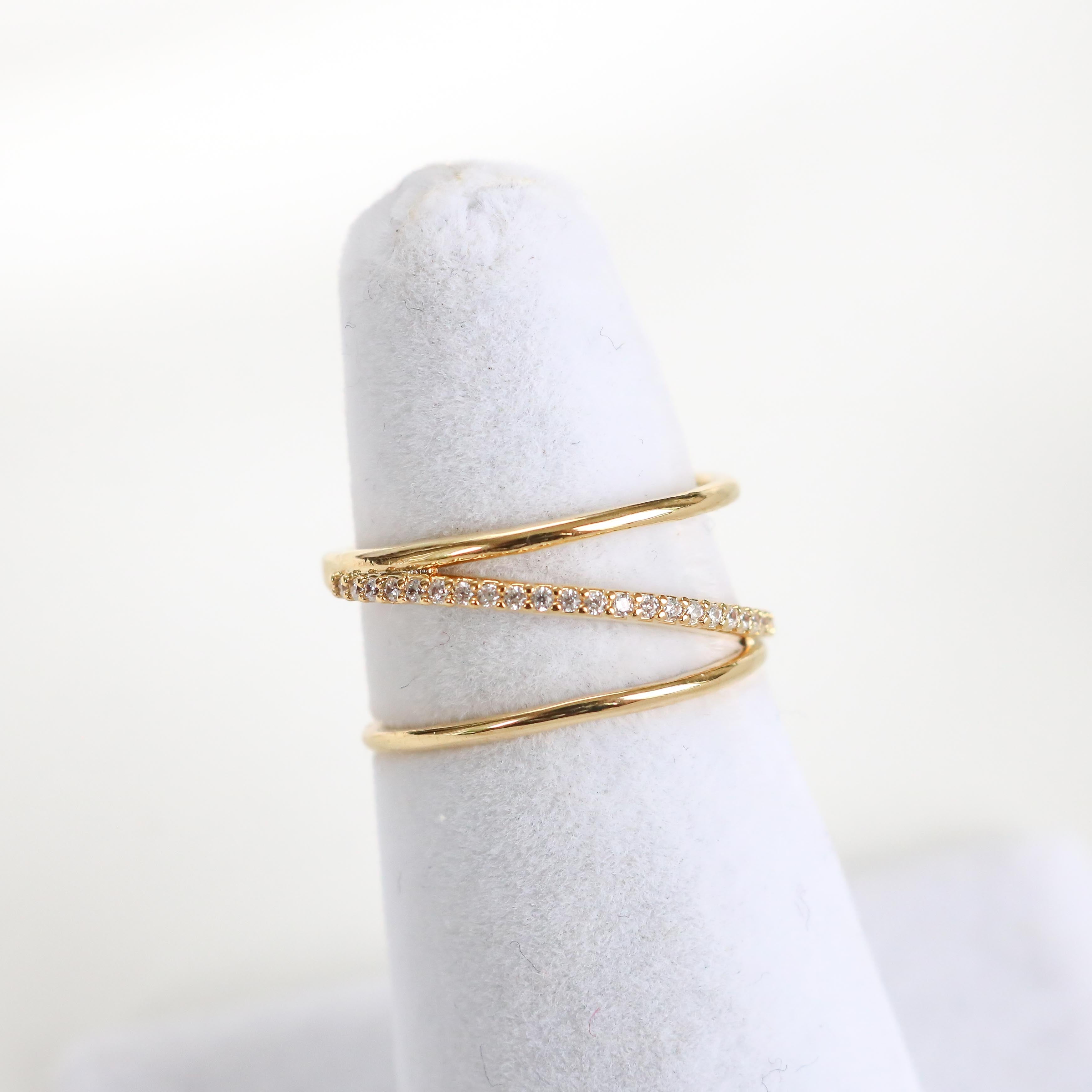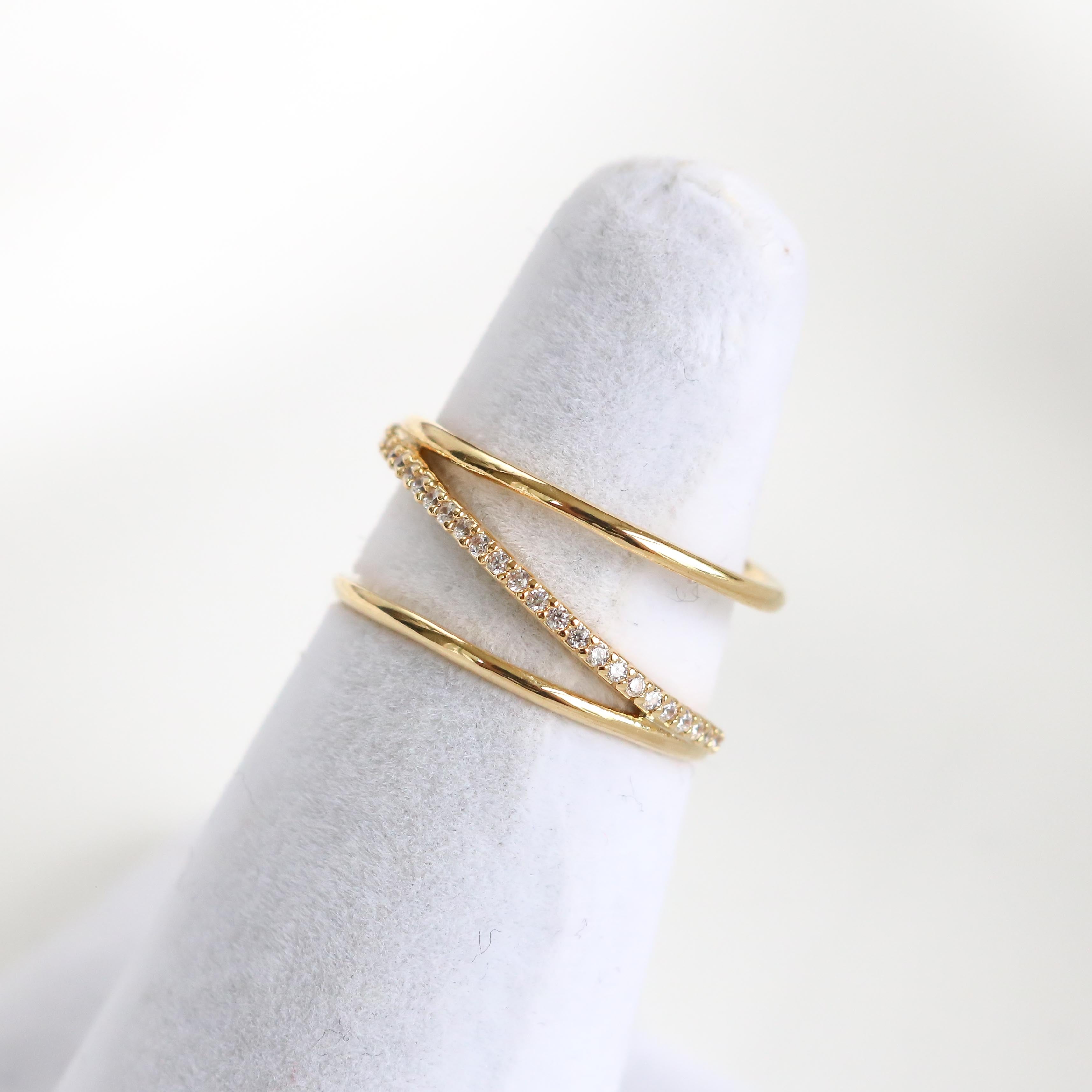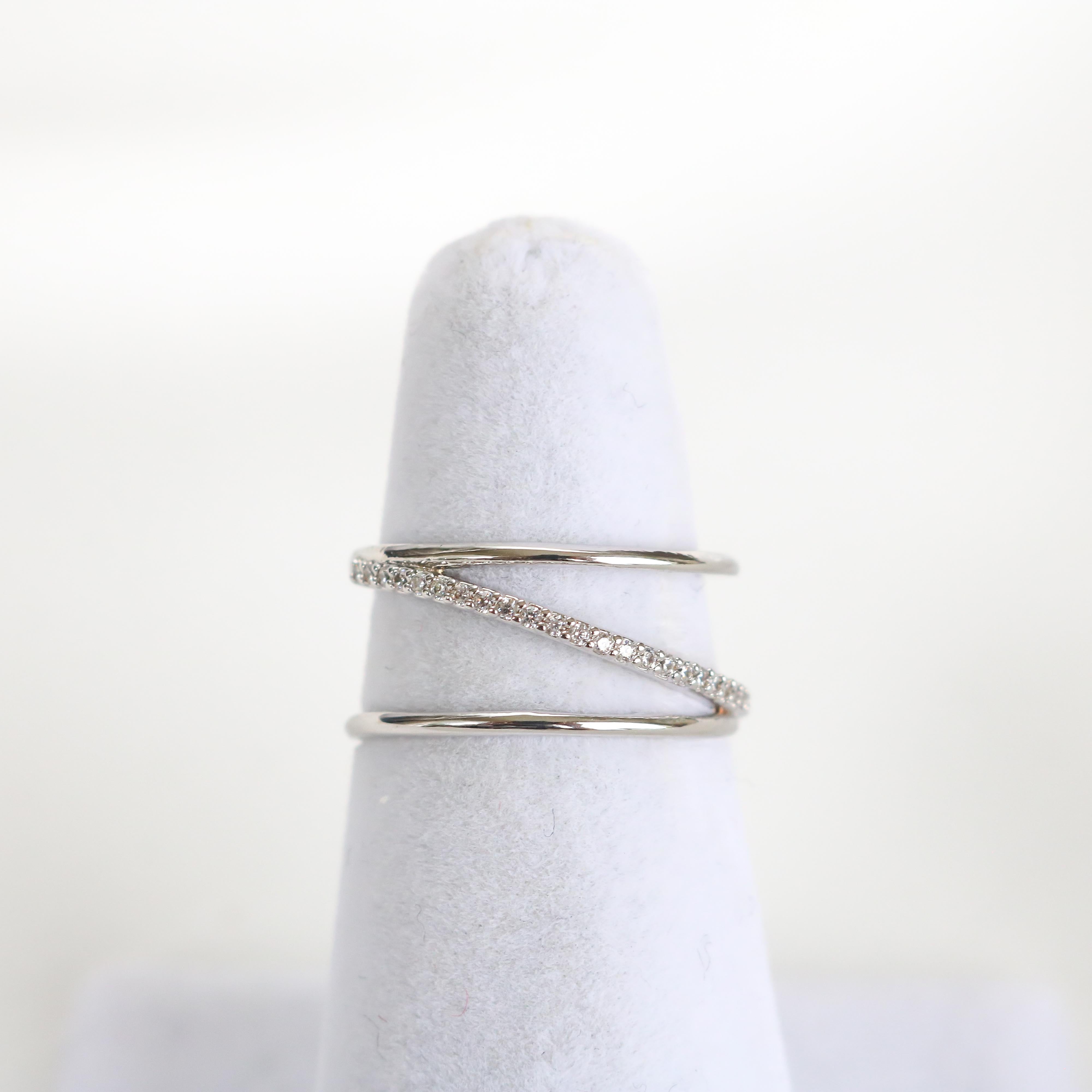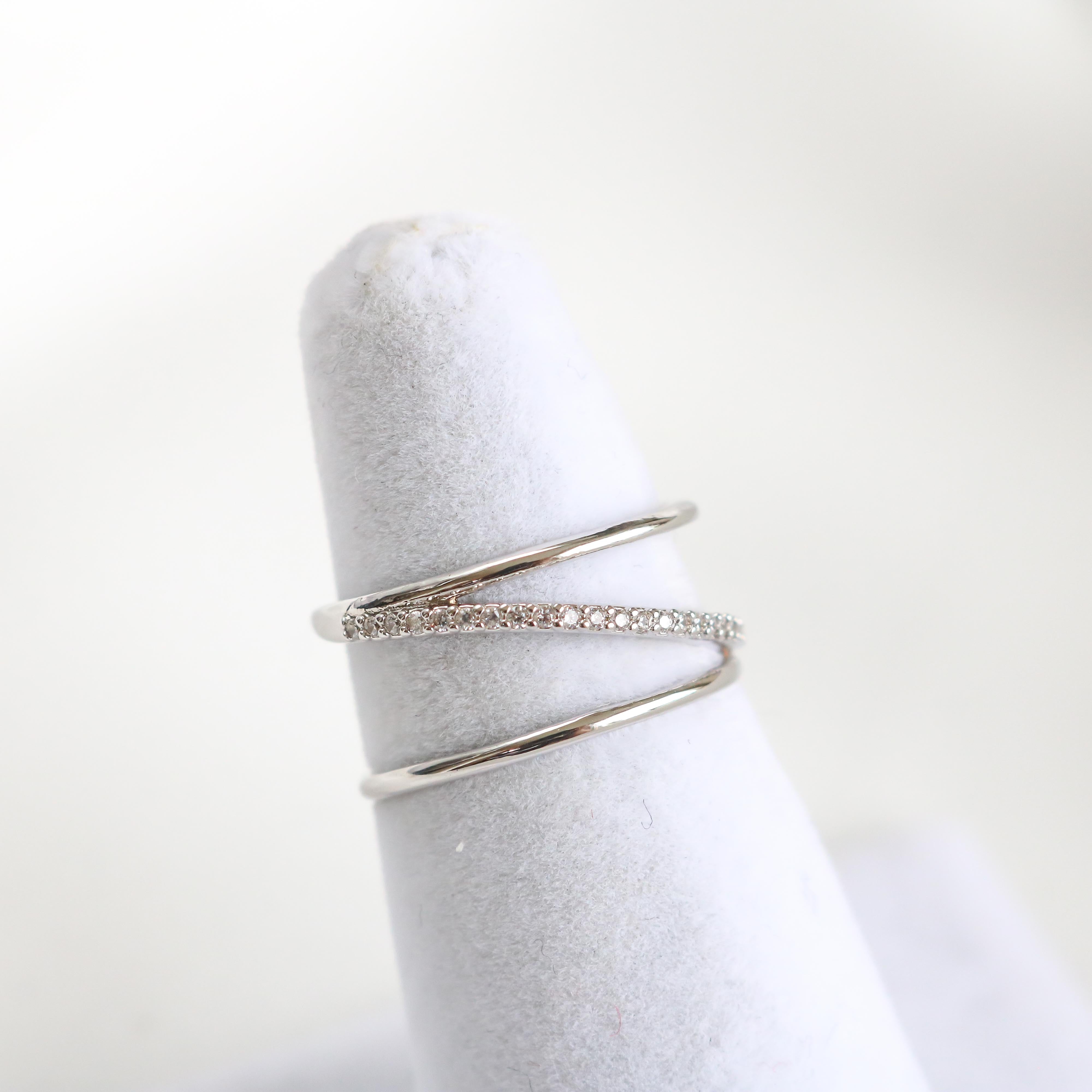 Modern and trendy, the Posey Line ring features a crystal-encrusted line that runs diagonally across the bands.
